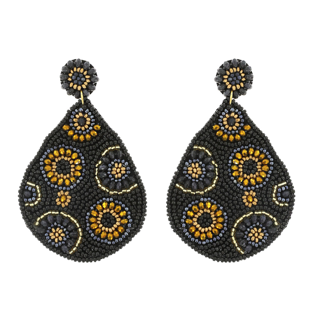 Large Ethnic Multicolor Seed Bead Teardrop Handmade Beaded Dangle And Drop Earrings
