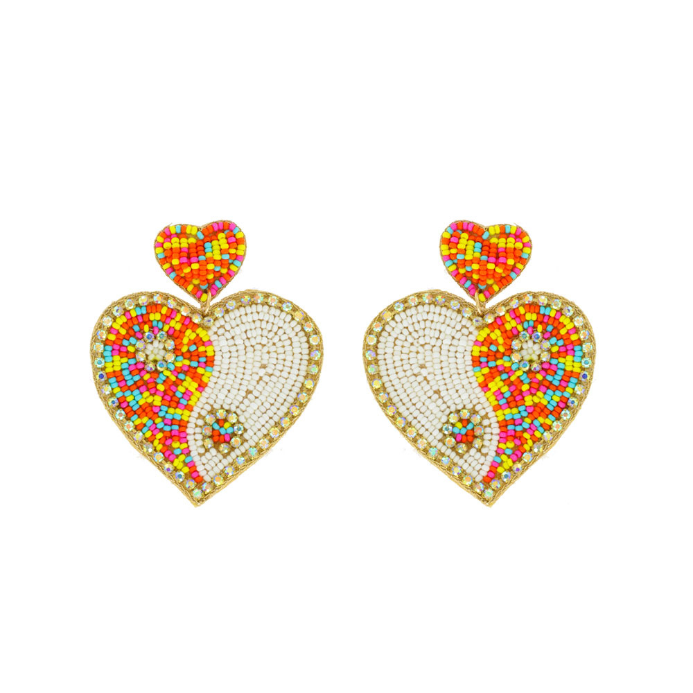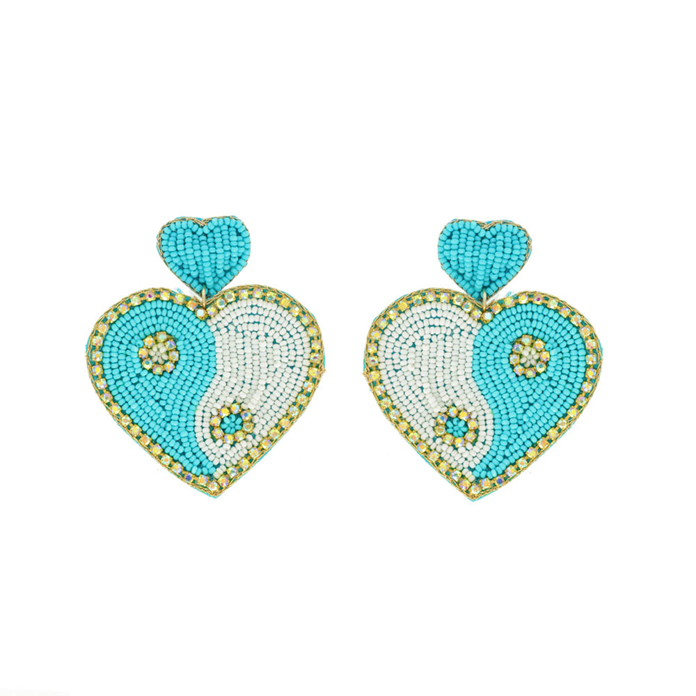 SEED BEAD HANDMADE YIN YANG HEART SHAPED BEADWORK DROP EARRINGS