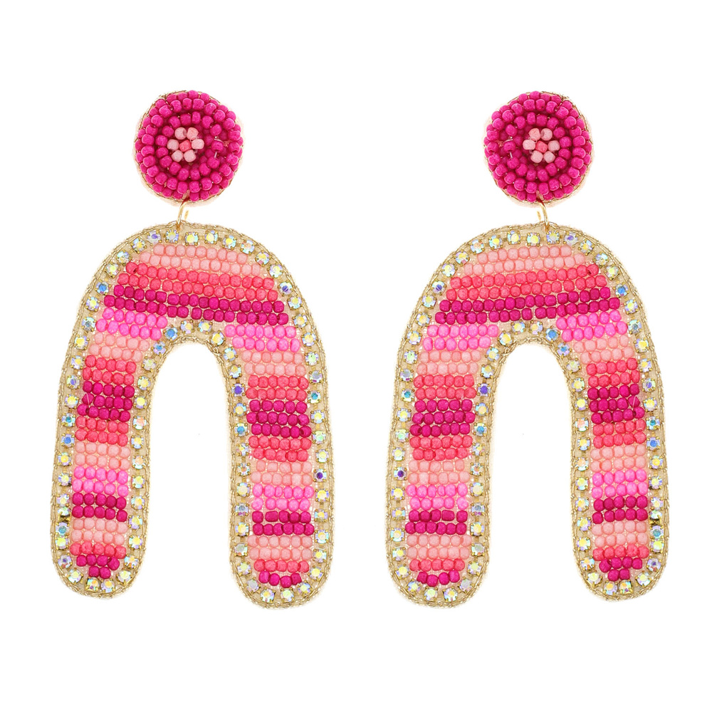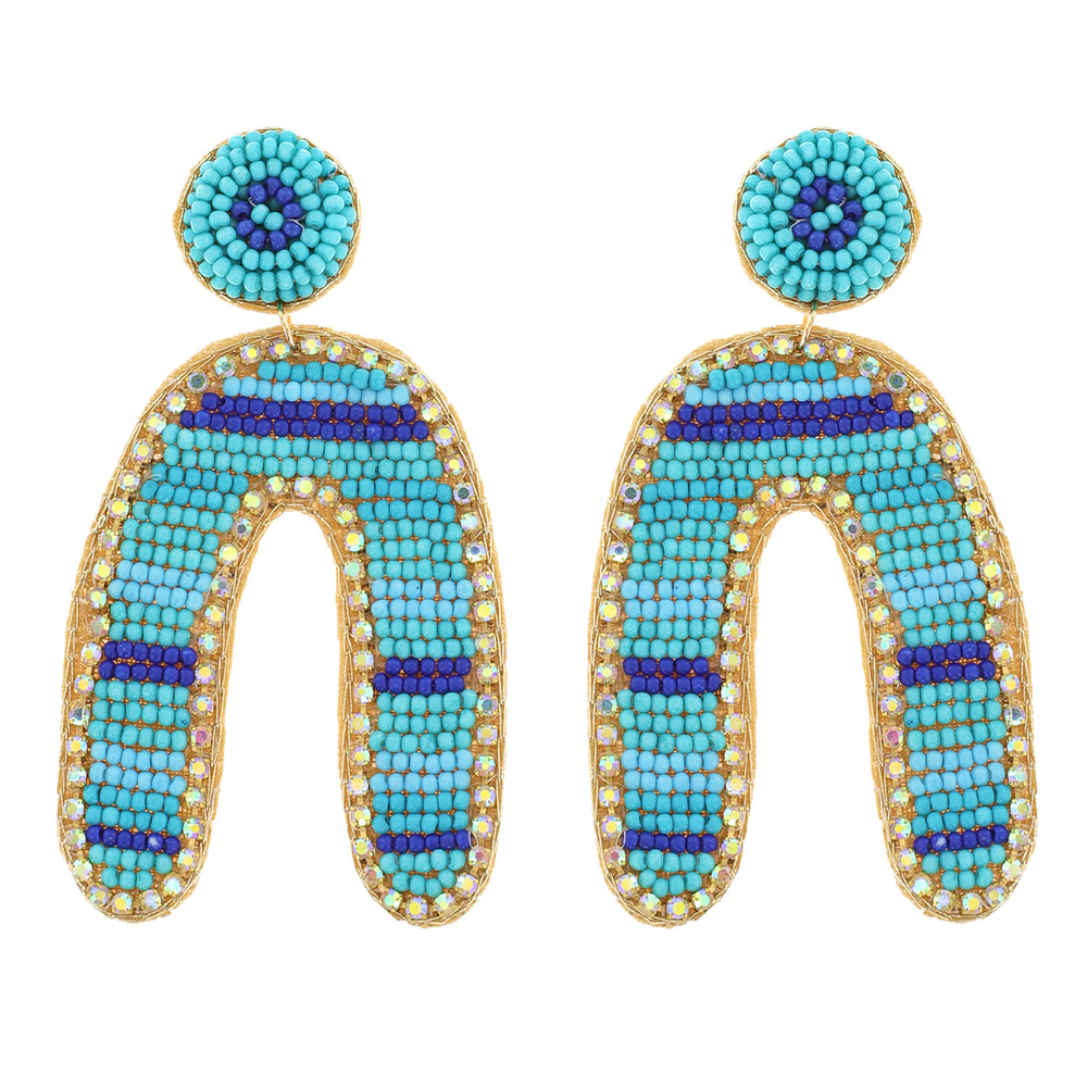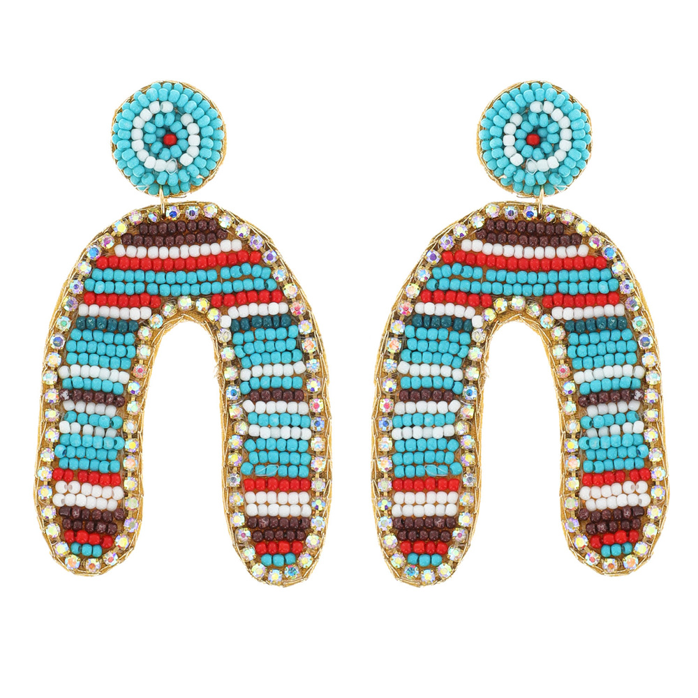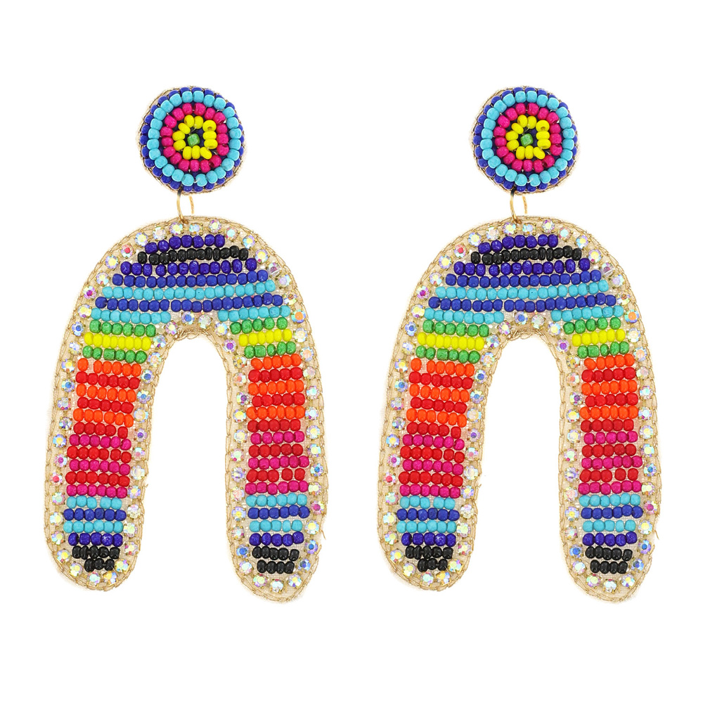 LARGE MULTICOLOR SEED BEAD ARCH HANDMADE JEWELED EMBROIDERY DANGLE AND DROP EARRINGS