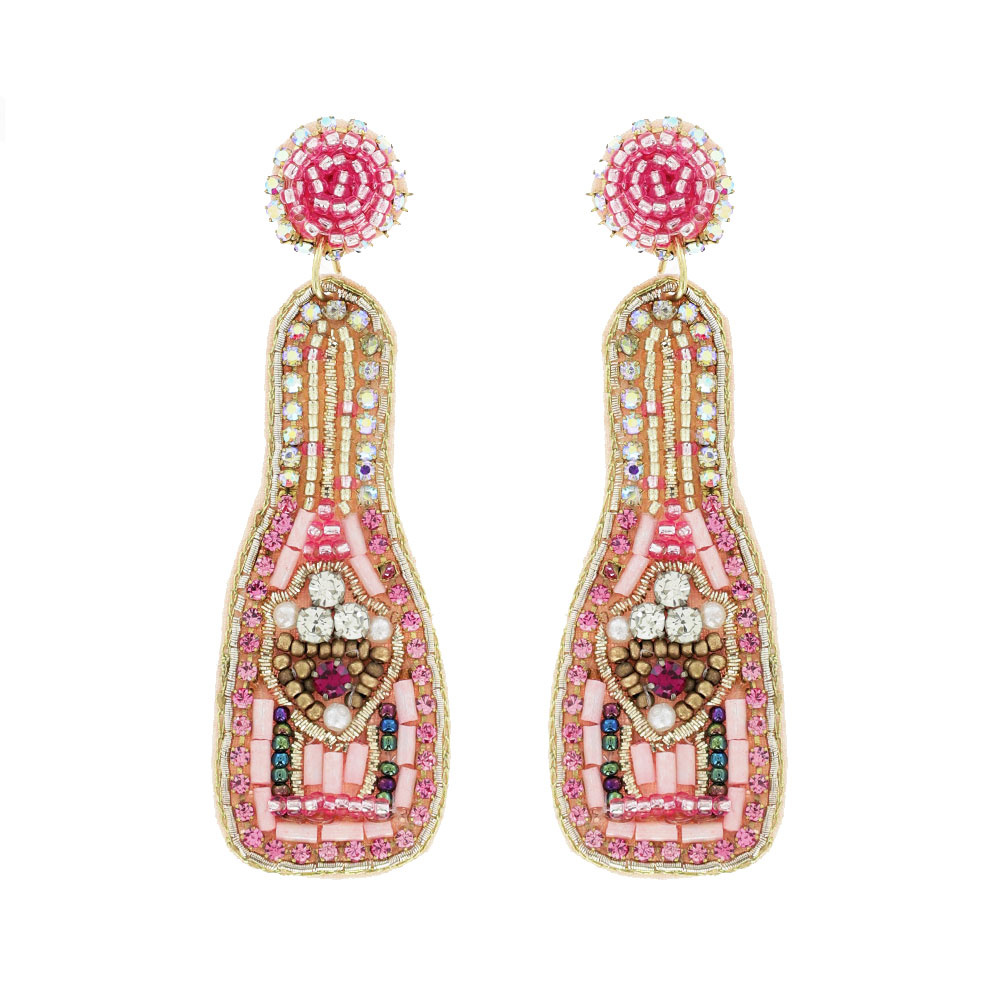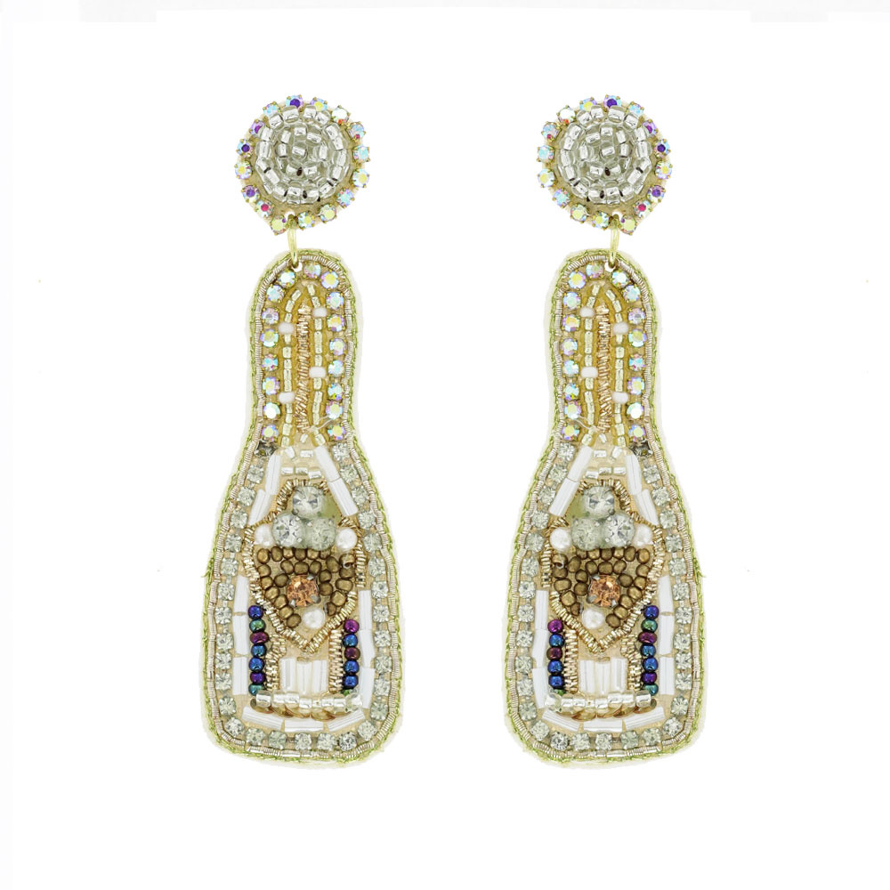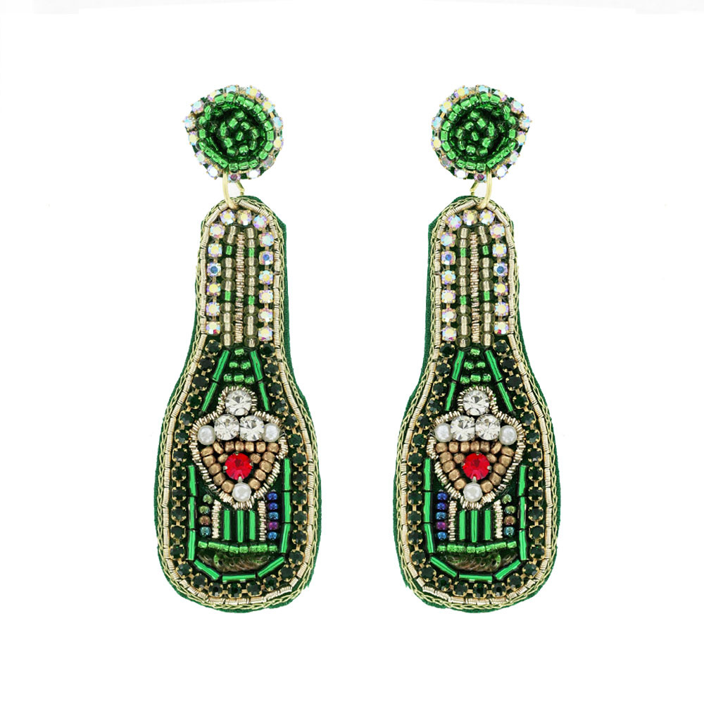 SEED BEAD HANDMADE CHAMPAGNE TOAST CHEERS BOTTLE BEADWORK JEWELED DROP EARRINGS