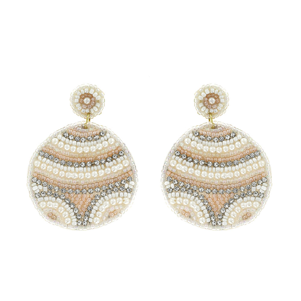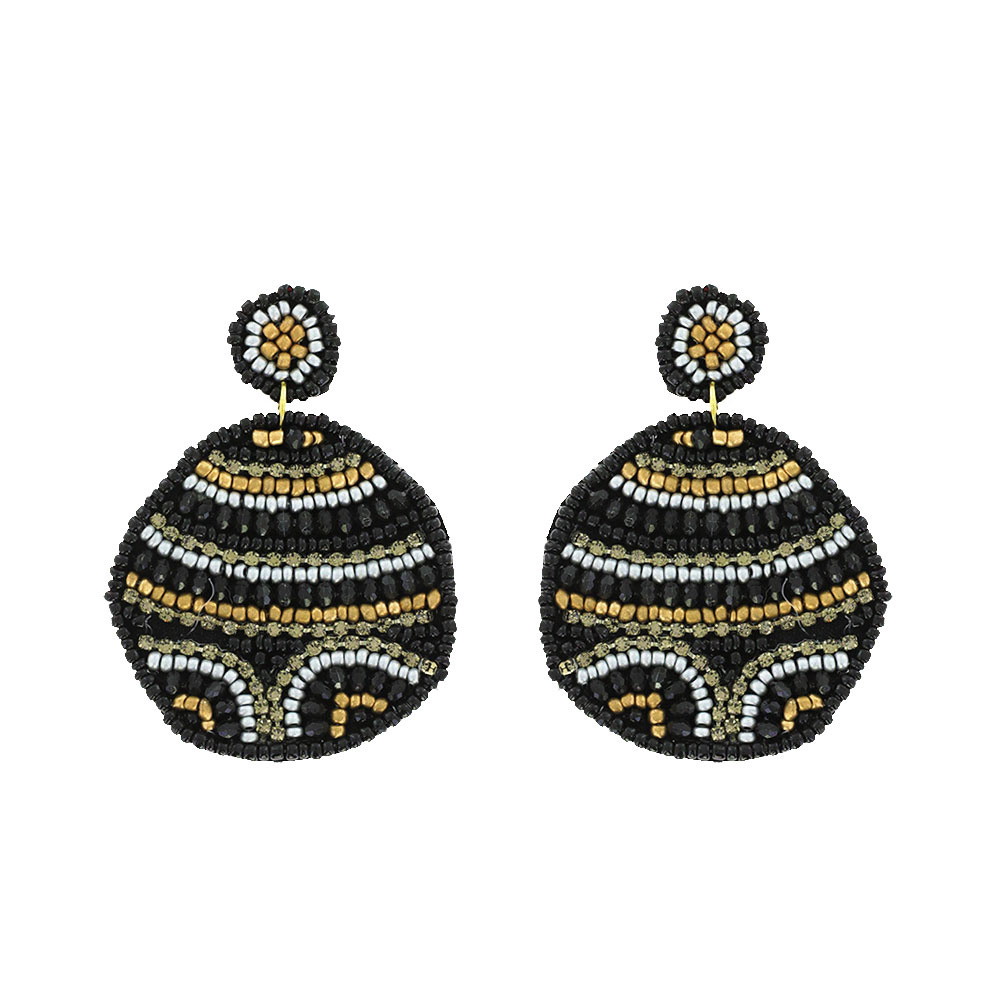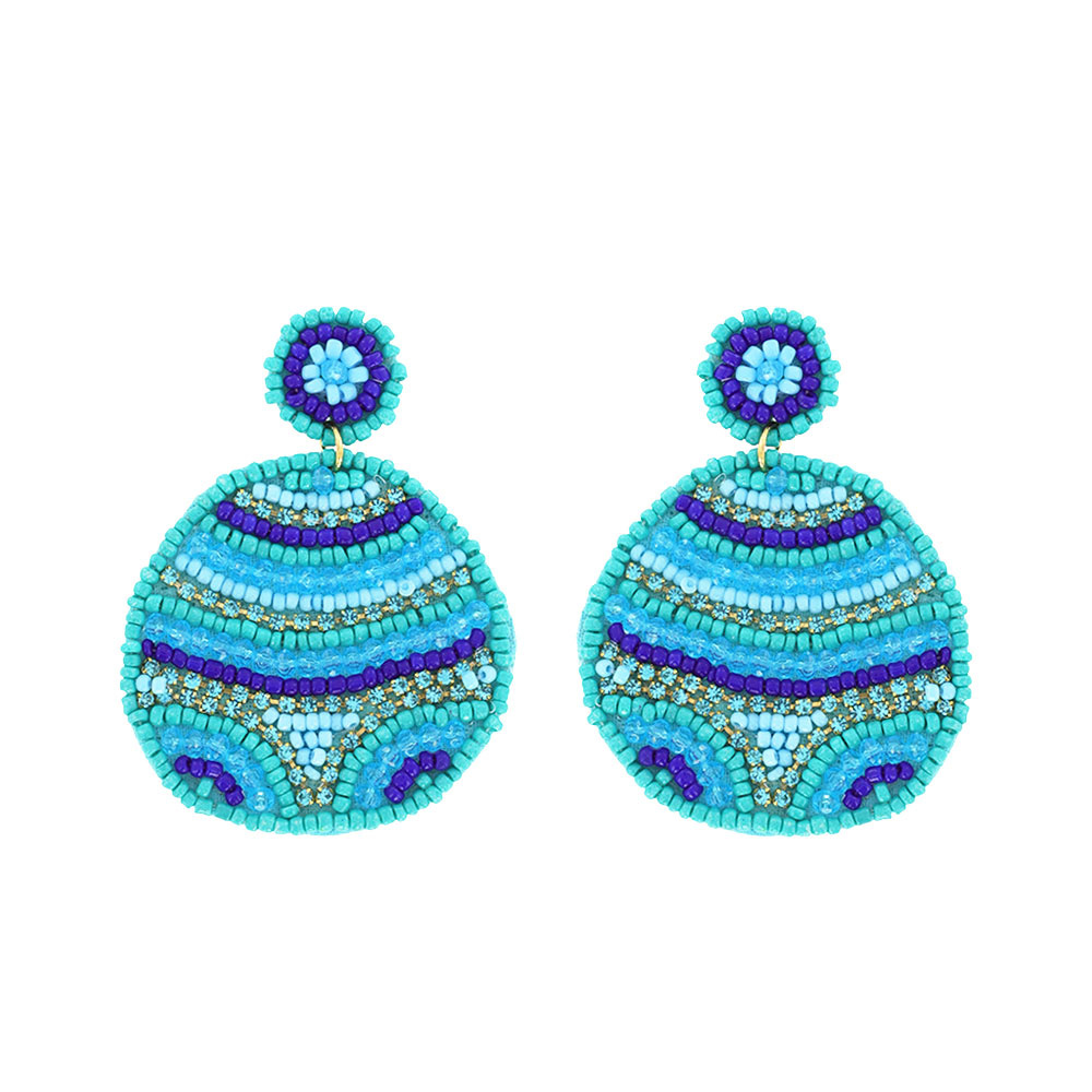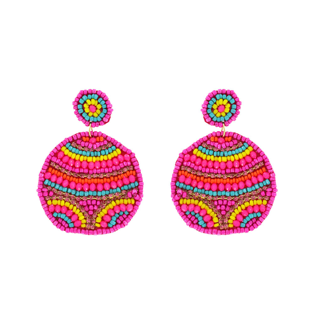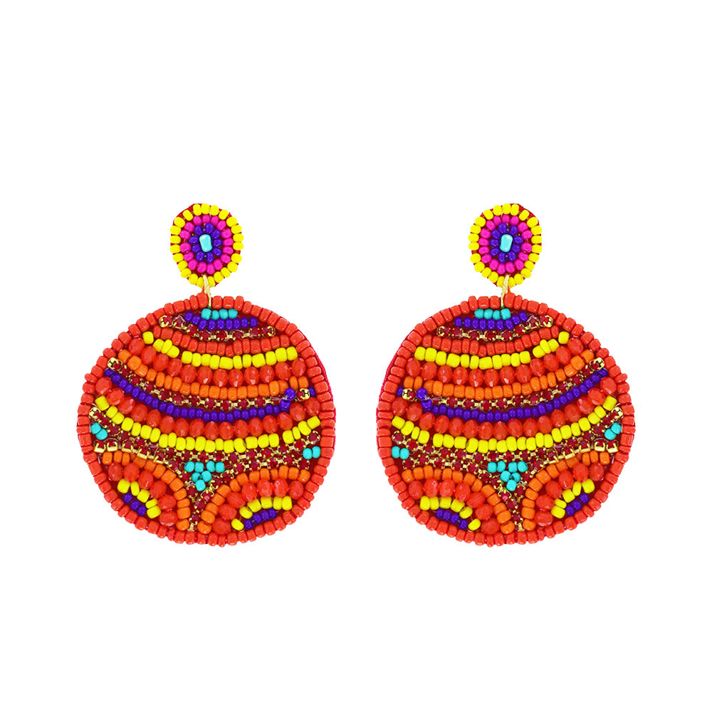 Boho Seed Bead Handmade 2-tier Disc Beadwork Drop Earrings