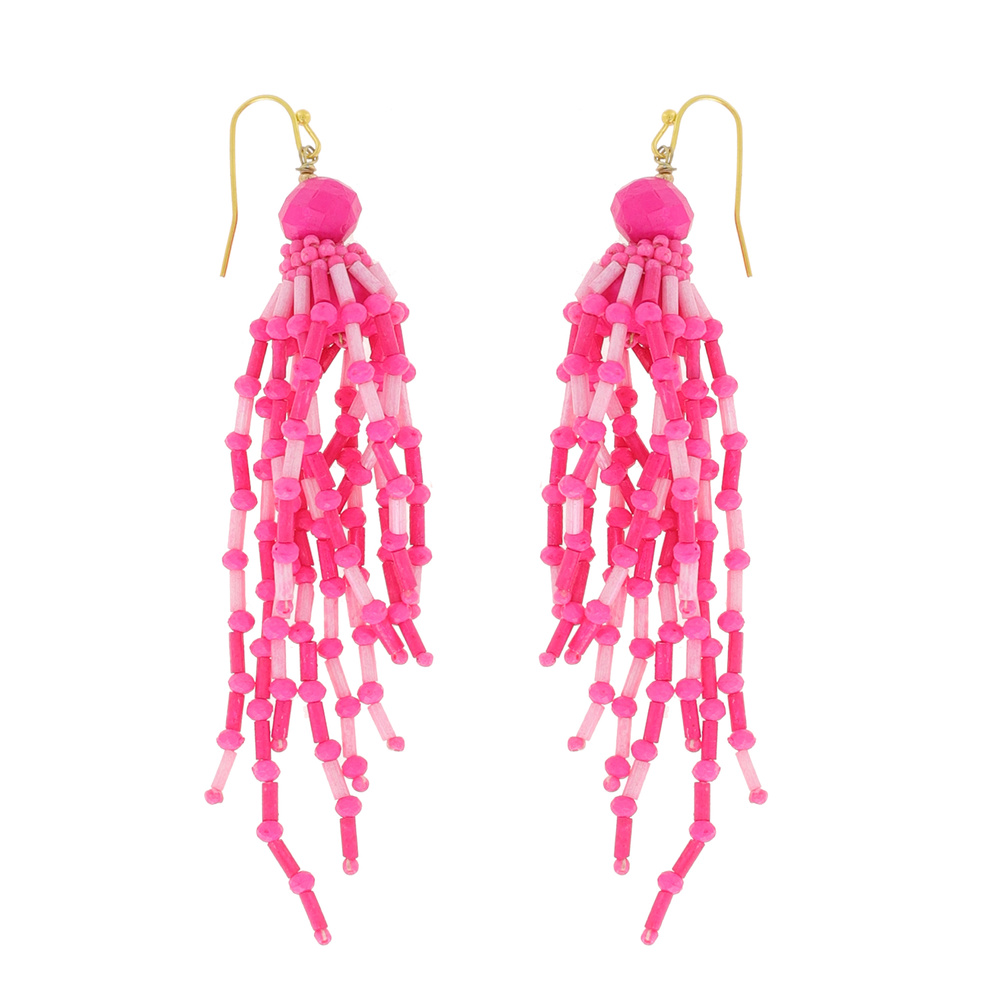 Native American Multicolor Beaded Fringe Long Drop Dangle Hook Earrings