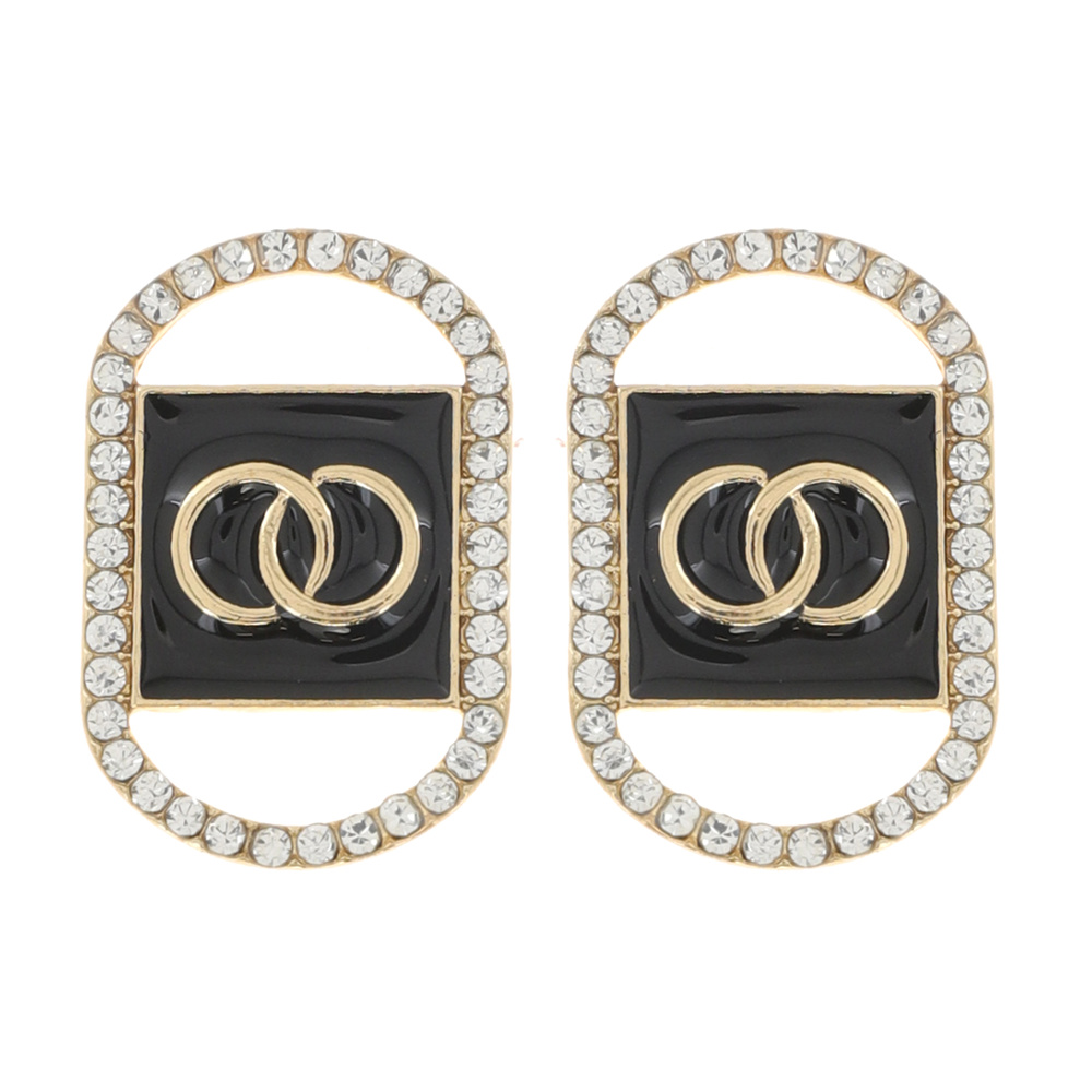LINKED CIRCLES - OPEN DOG TAG CRYSTAL RHINESTONE PAVE ENAMEL COATED EARRINGS