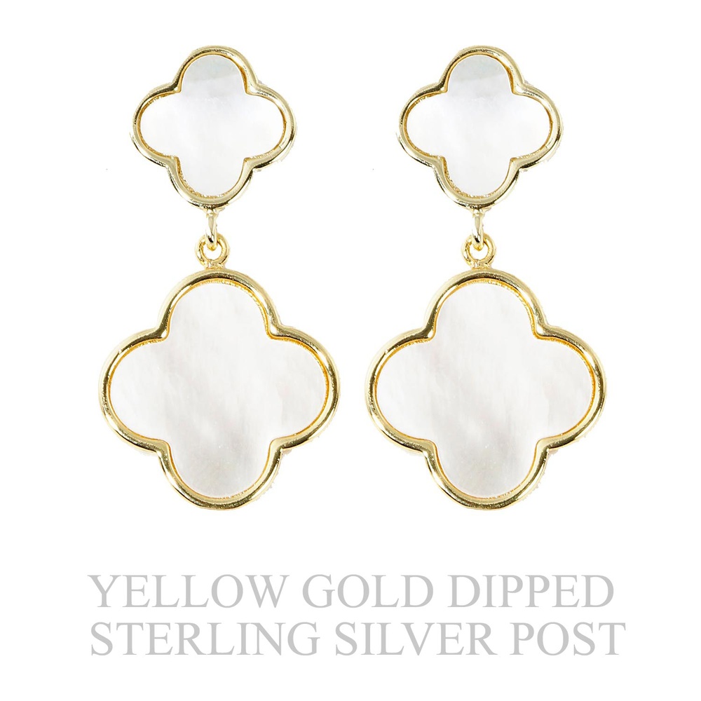 2-TIER GOLD PLATED MOTHER OF PEARL QUATREFOIL DROP EARRINGS