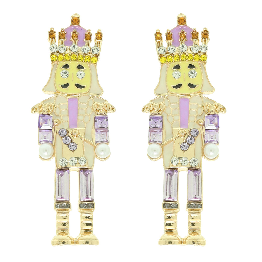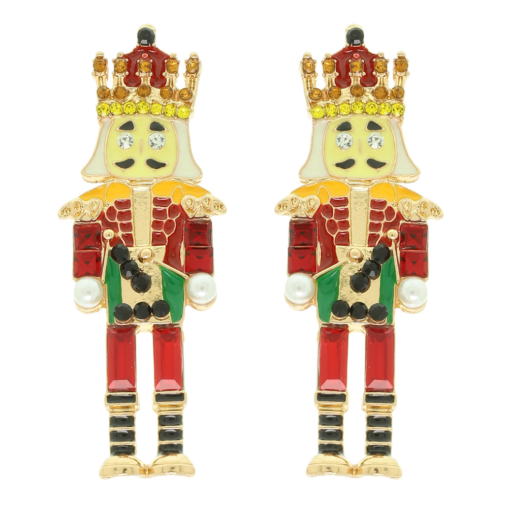 CHRISTMAS NUTCRACKER CRYSTAL PEARL EMBELLISHED POST EARRINGS