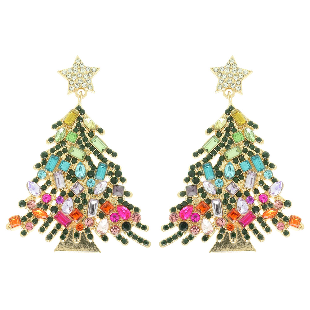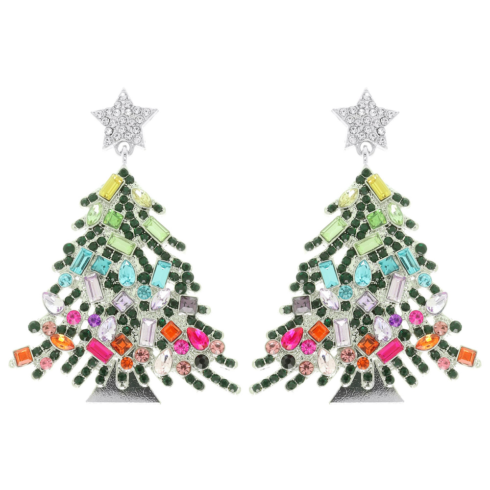 CHRISTMAS TREE EARRINGS WITH MULTICOLOR CRYSTAL AND RHINESTONE ACCENTS