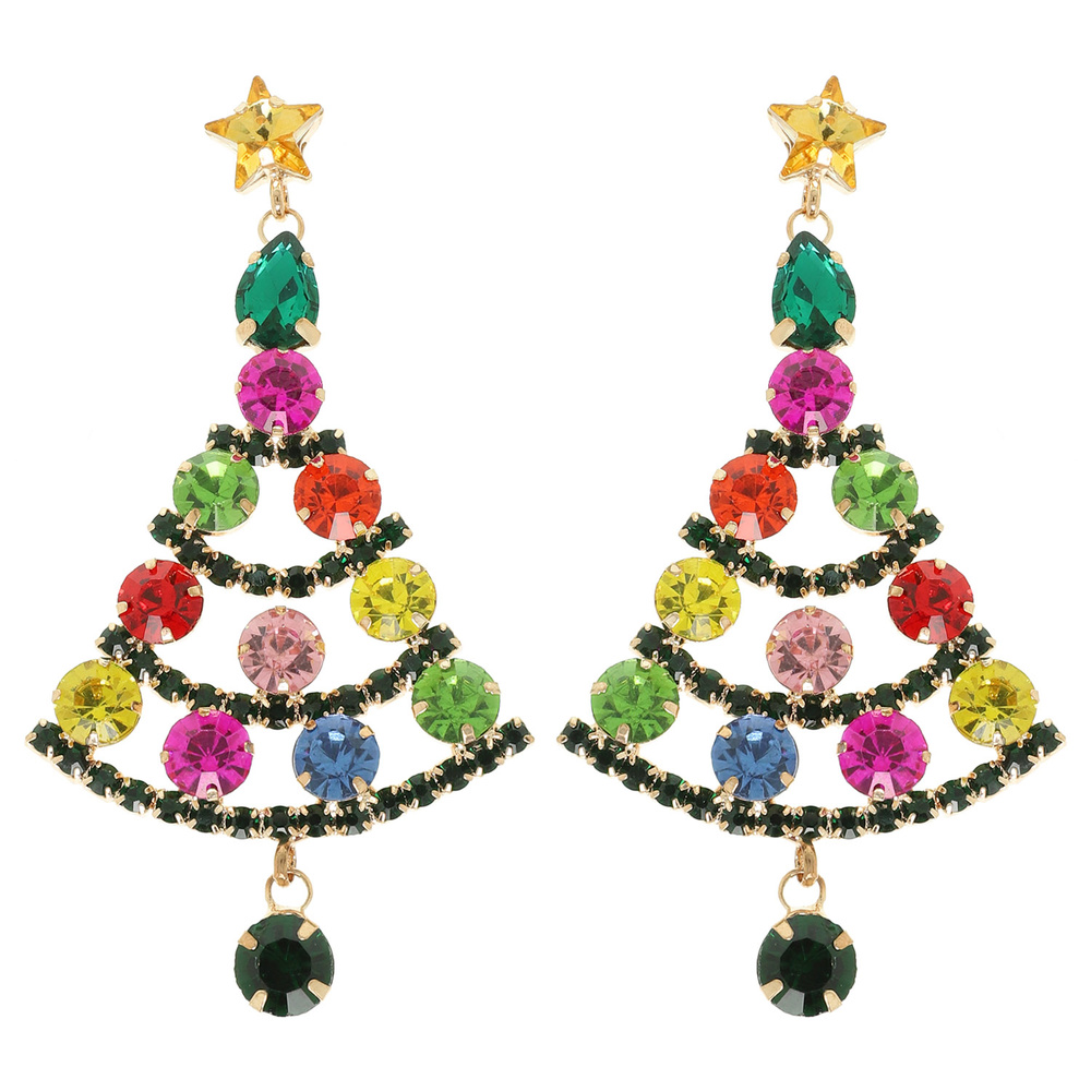 CHRISTMAS TREE DROP EARRINGS WITH MULTICOLOR CRYSTAL