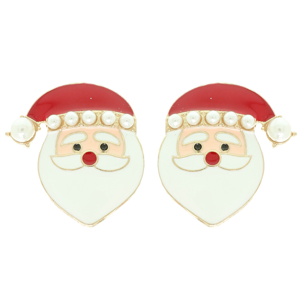 CHRISTMAS SANTA FACE STUD EARRINGS WITH PEARL TRIM DETAIL