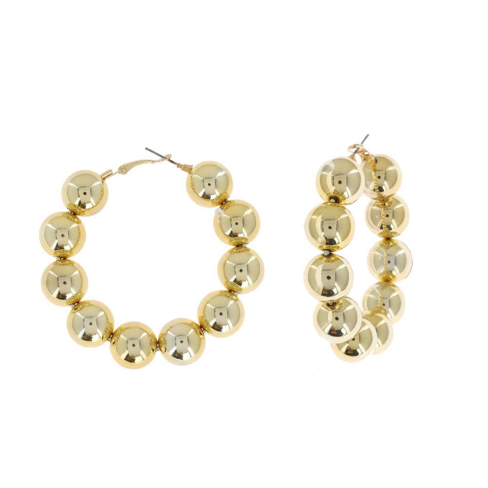 60MM METALLIC BALL BEADED HOOP EARRINGS