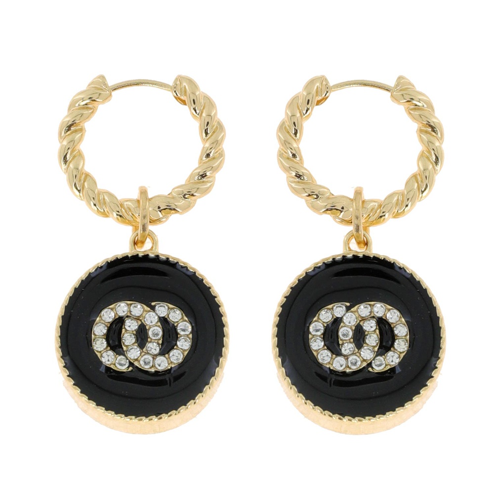 INTERLOCKING CIRCLES CRYSTAL RHINESTONE PAVE ENAMEL COATED CIRCULAR CHARM TWISTED HOOP EARRINGS