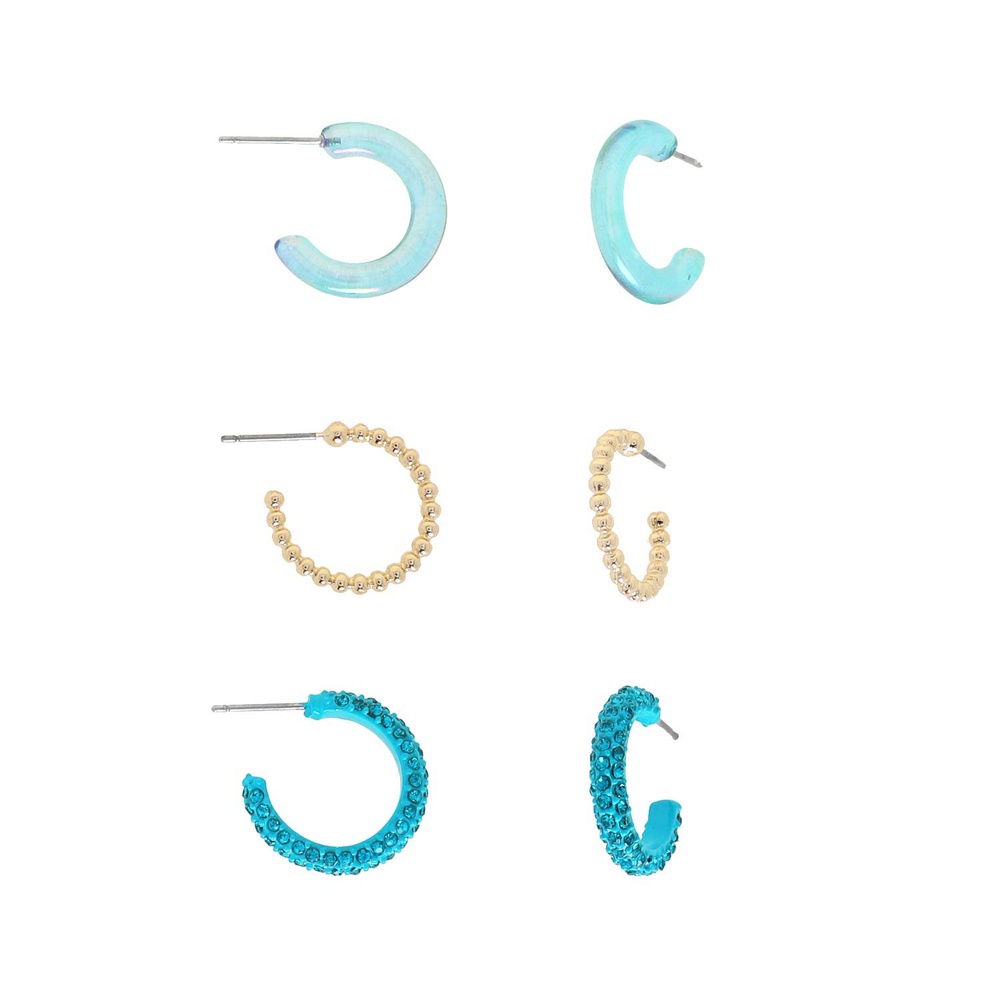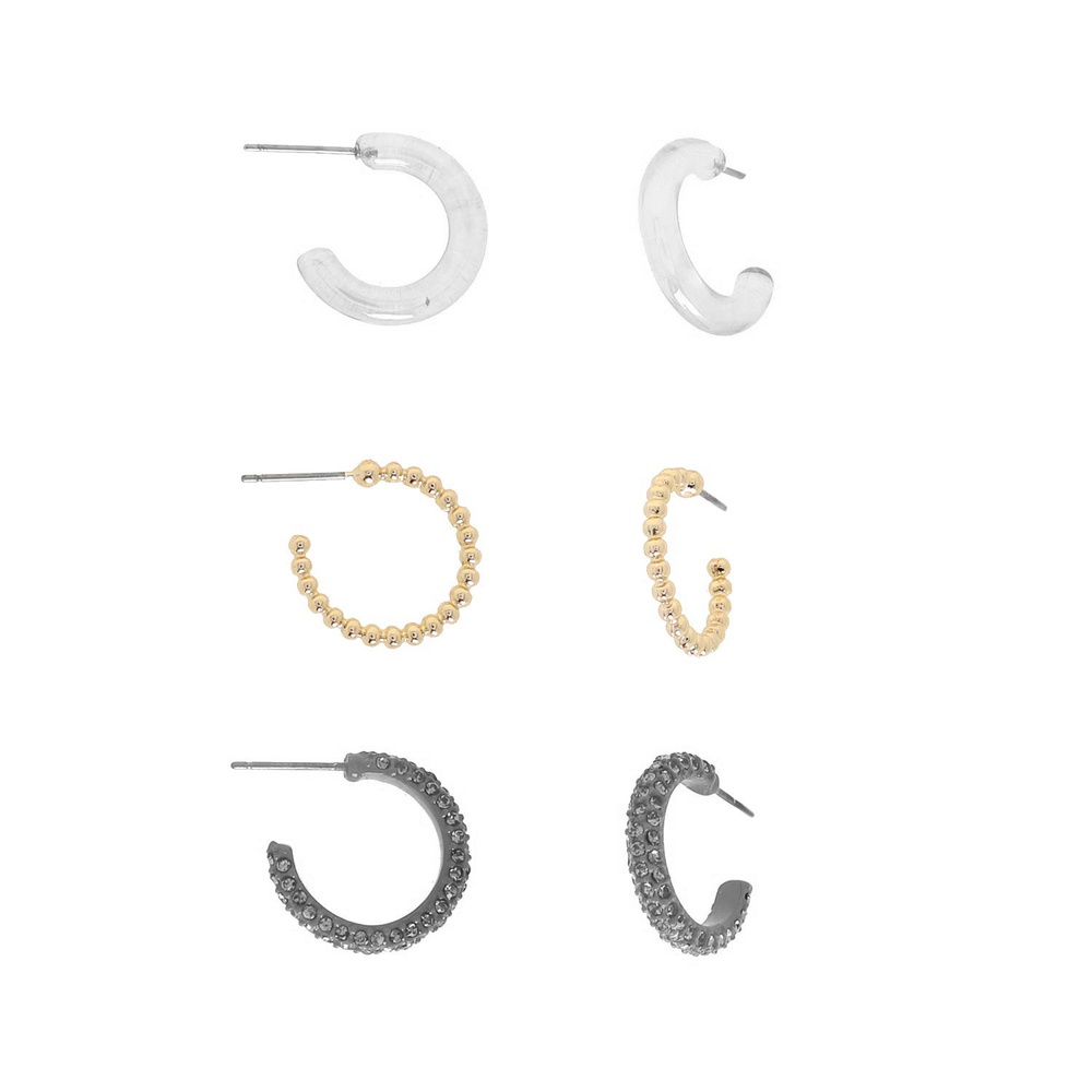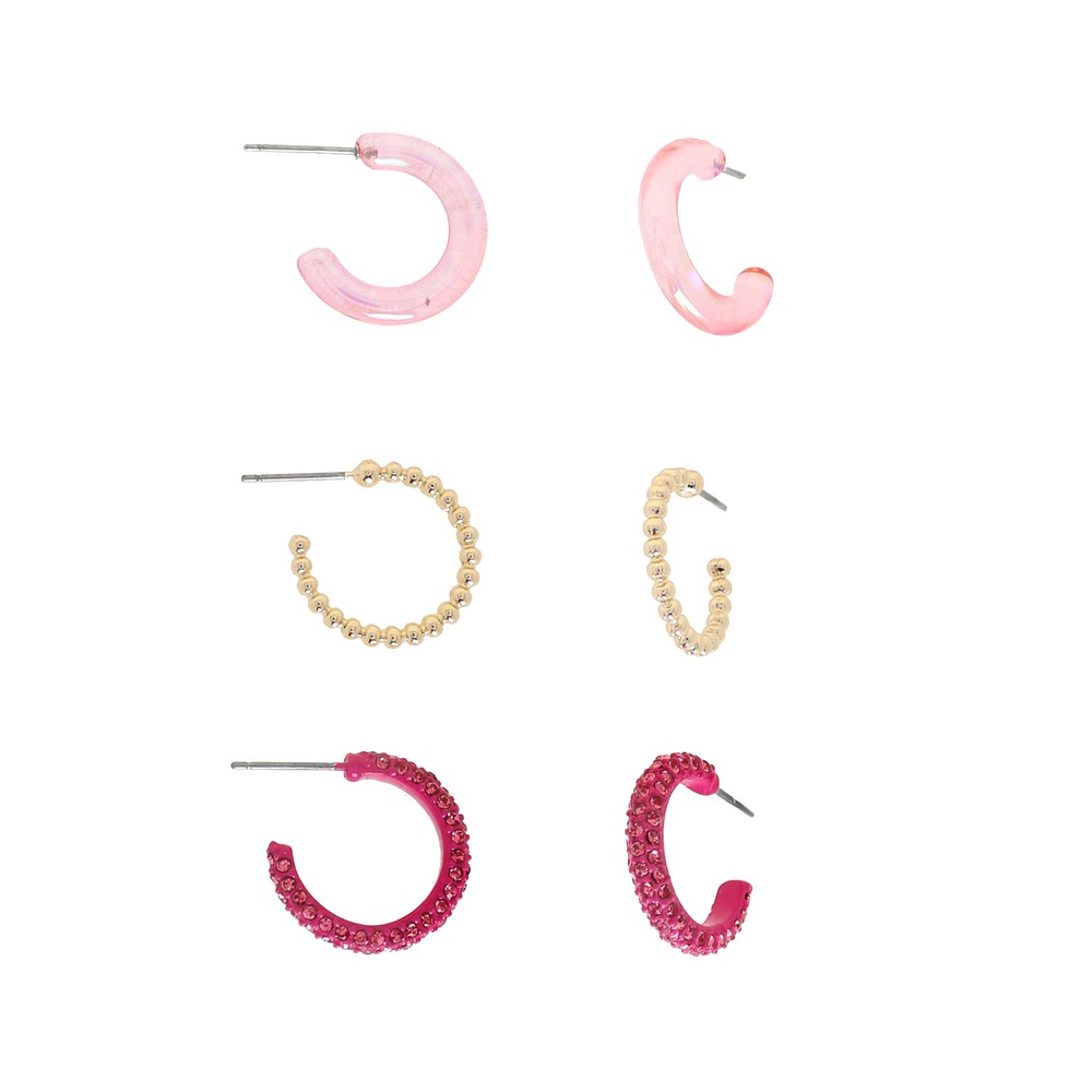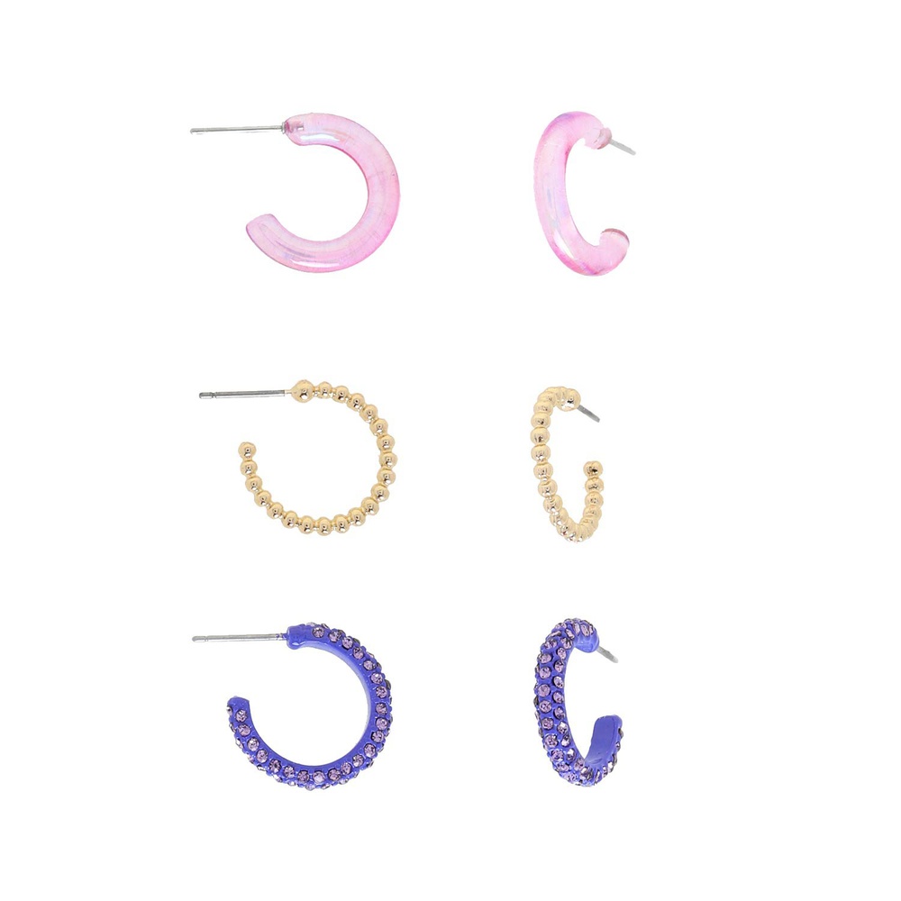 3-pair Crystal Assorted Acrylic Open Hoop Set