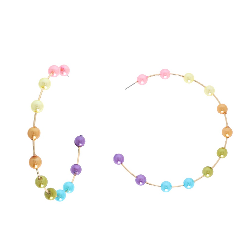 90MM LARGE MULTICOLOR PEARL STATION HOOP EARRINGS