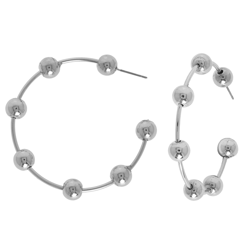 Metal Sphere Stationed Hoop Earrings