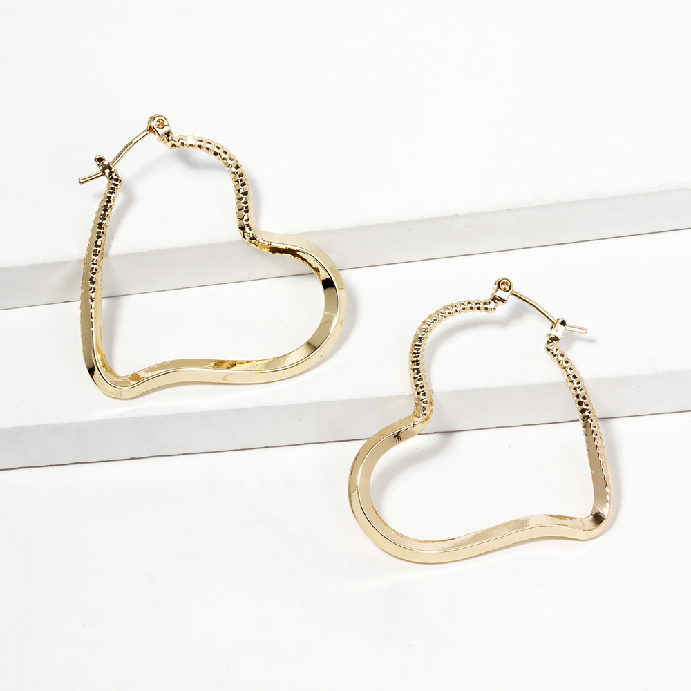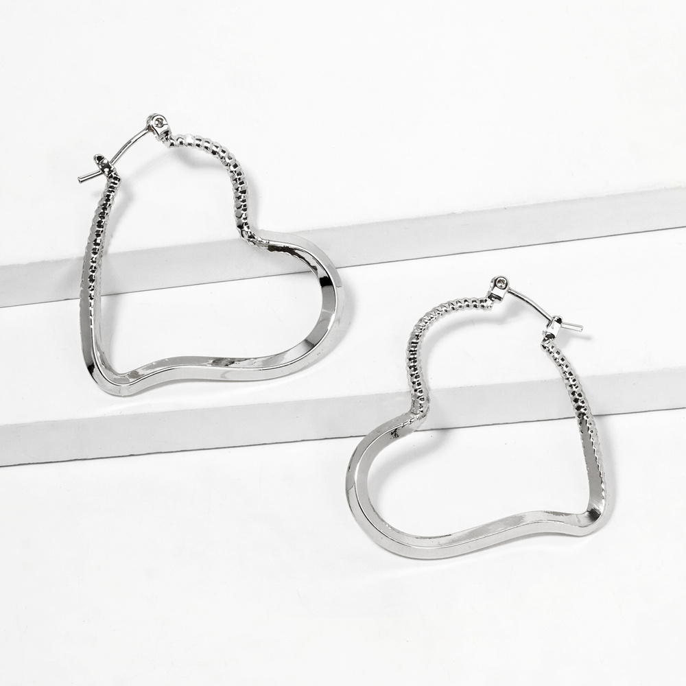 POLISHED HEART SHAPE HOOP EARRINGS IN WHITE GOLD PLATING