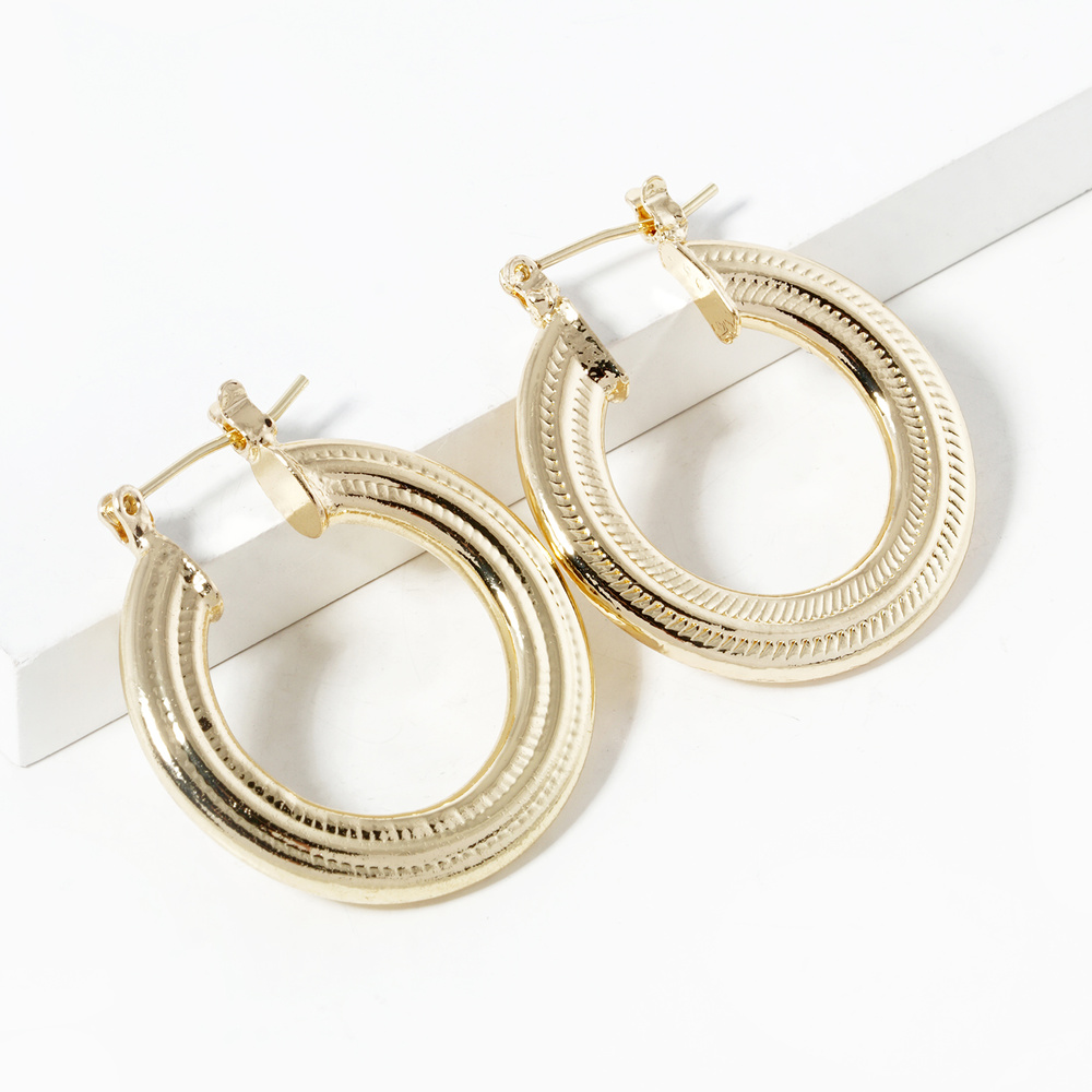 RIBBED HOOP EARRINGS IN YELLOW GOLD PLATING WITH STERLING SILVER POST