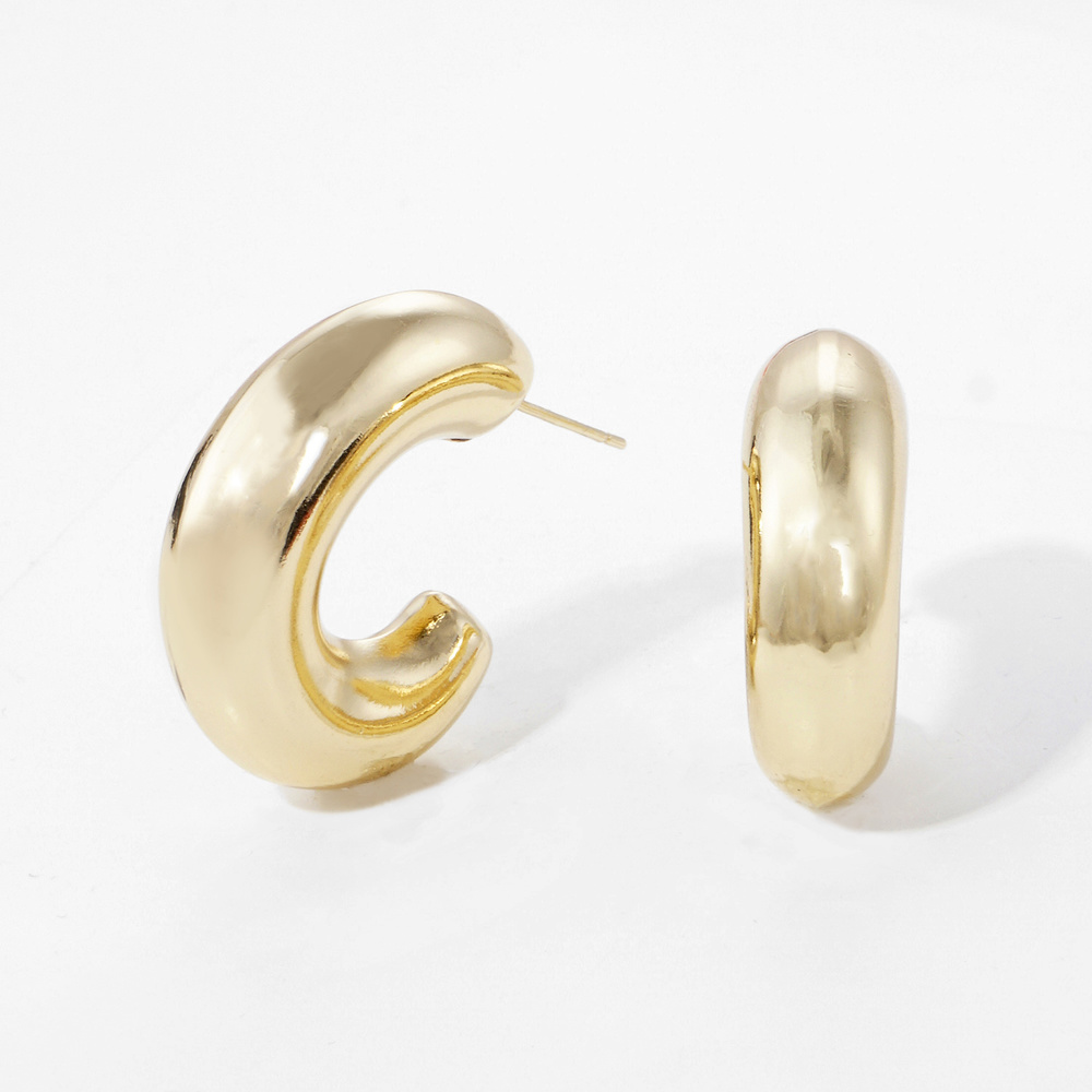 CHUNKY CRESCENT TUBE HOOP EARRINGS IN YELLOW GOLD PLATING