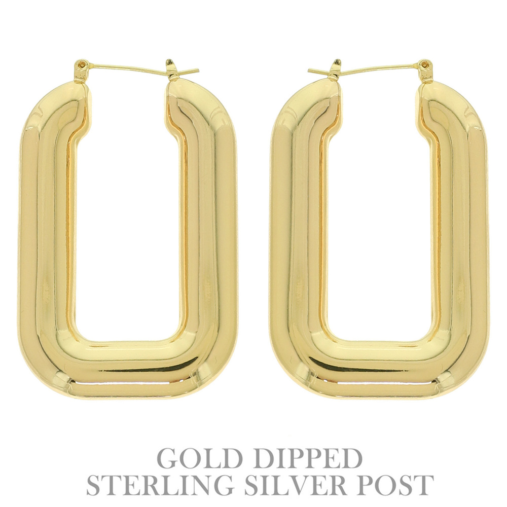 POLISHED BLOCKY ELLIPSE HOOP EARRINGS IN YELLOW GOLD PLATING