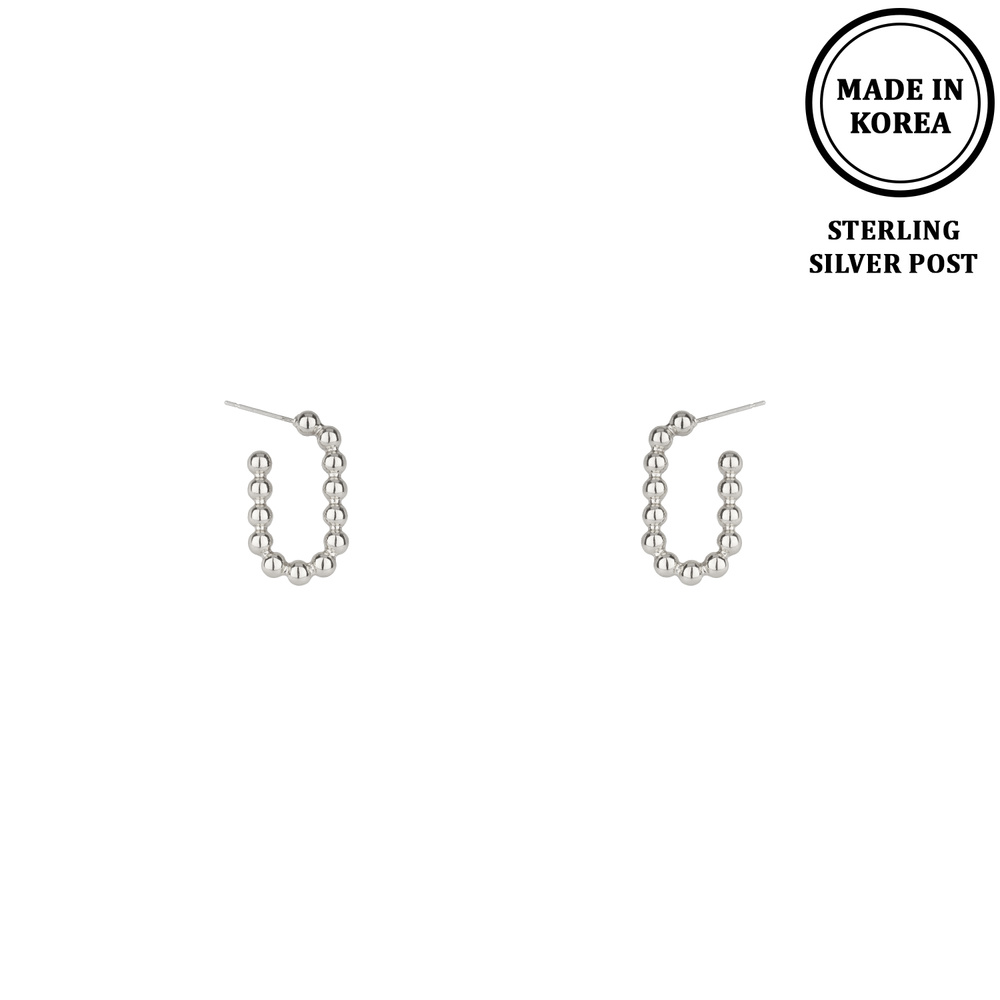 BALL BEADED OPEN HOOP POST EARRINGS IN SILVER TONE METAL