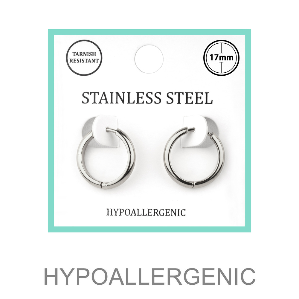 STAINLESS STEEL HUGGIE HOOP EARRINGS IN SILVER TONE METAL