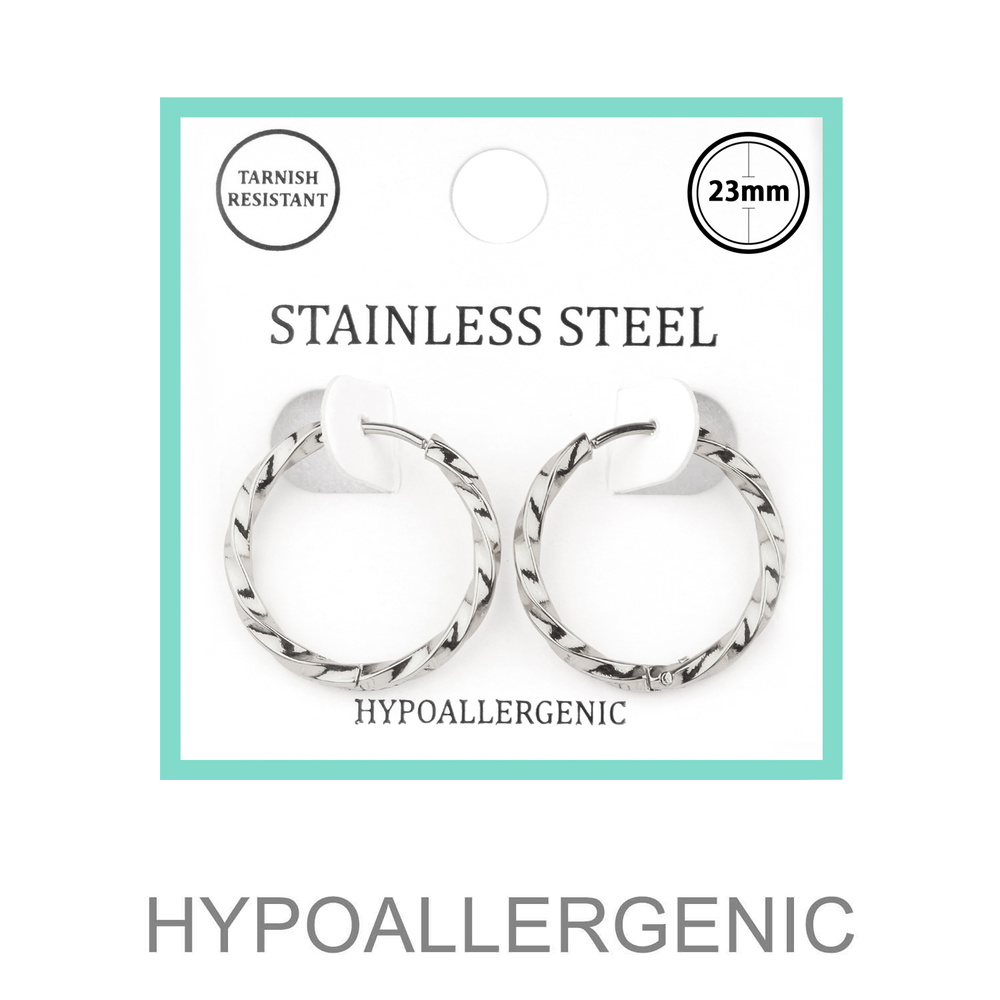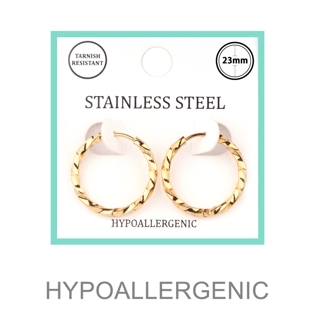 STAINLESS STEEL TWISTED HUGGIE HOOP EARRINGS IN GOLD TONE METAL