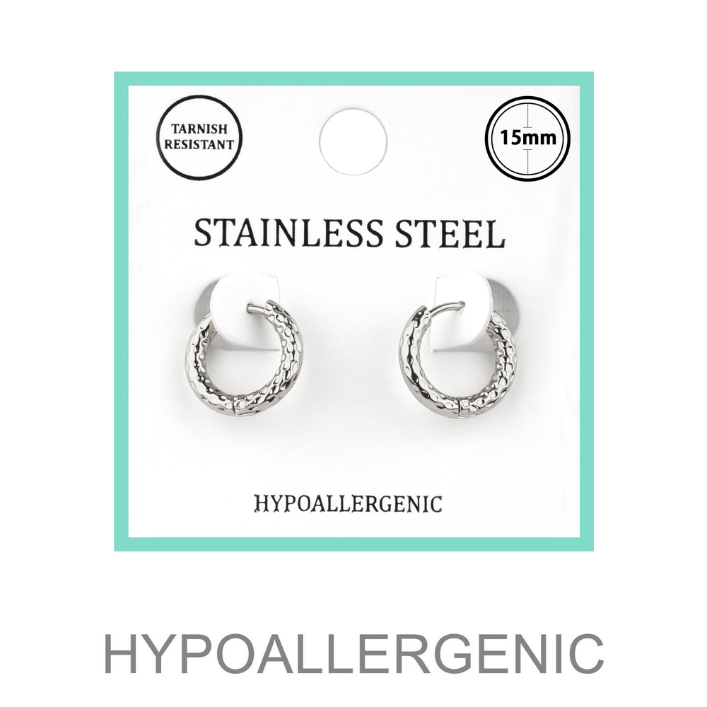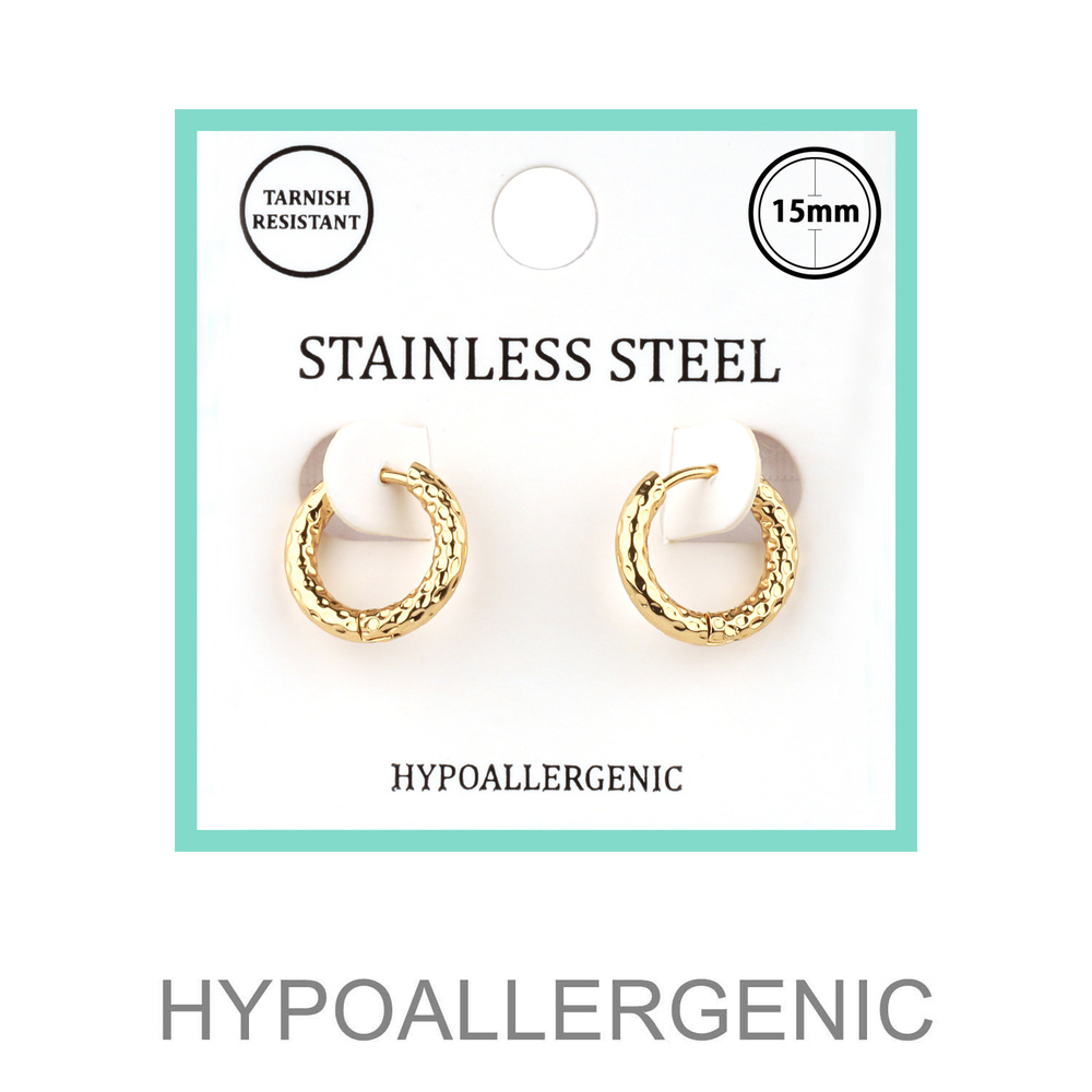 STAINLESS STEEL TEXTURE HUGGIE HOOP EARRINGS IN GOLD TONE METAL