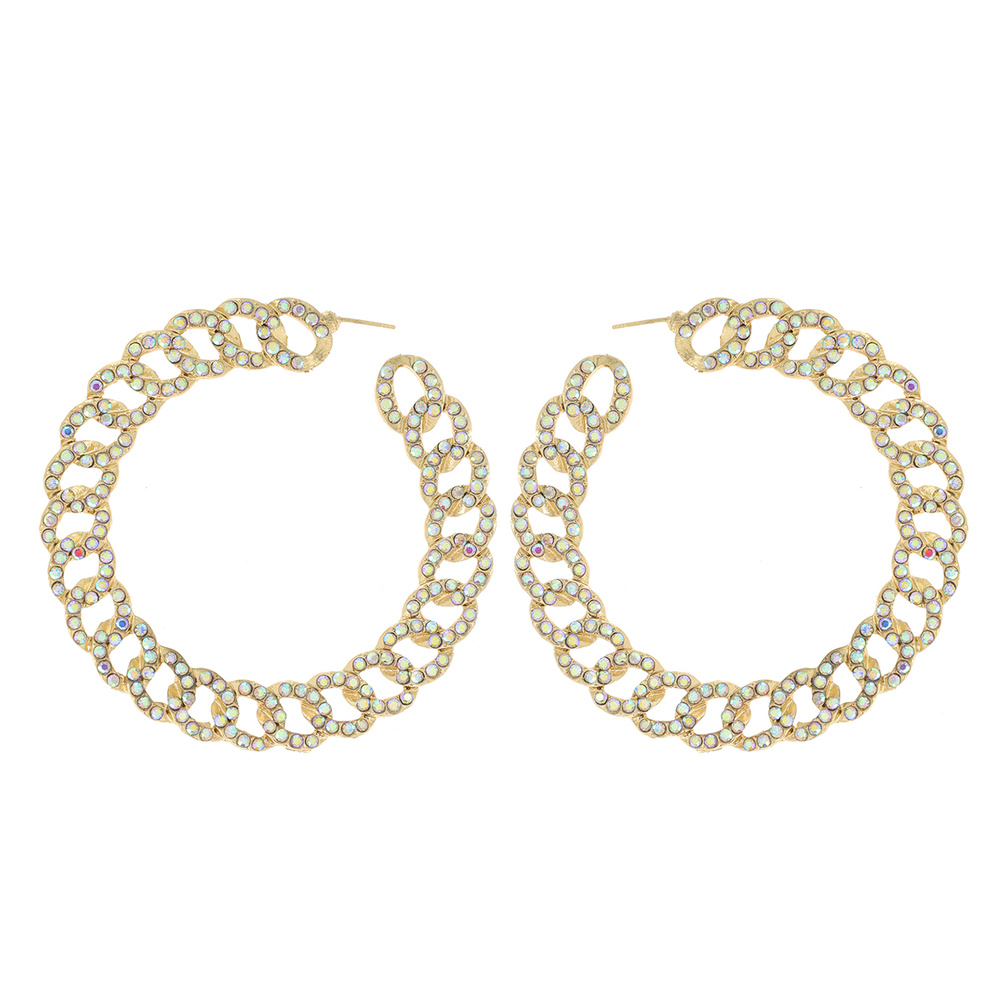 90s Style 60mm Rhinestone Pave Chain Link Open Hoop Earrings