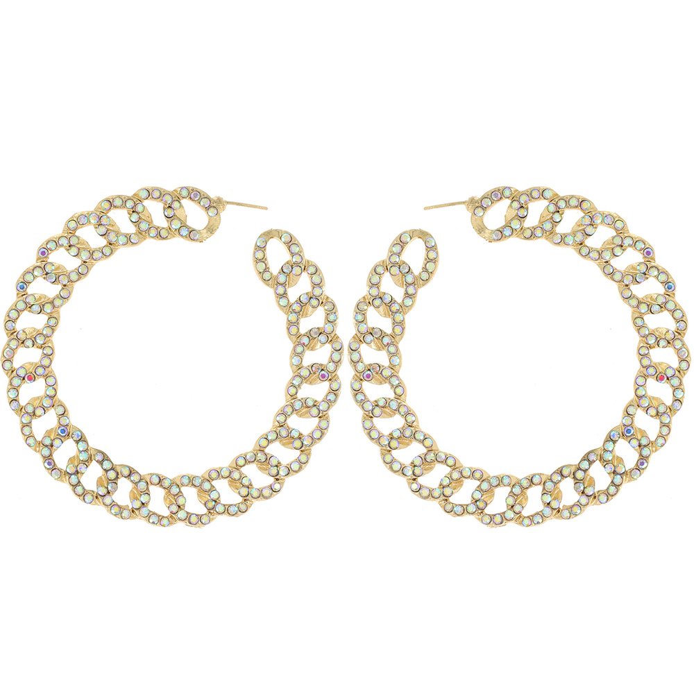 90S STYLE 80MM RHINESTONE PAVE CHAIN LINK OPEN HOOP EARRINGS