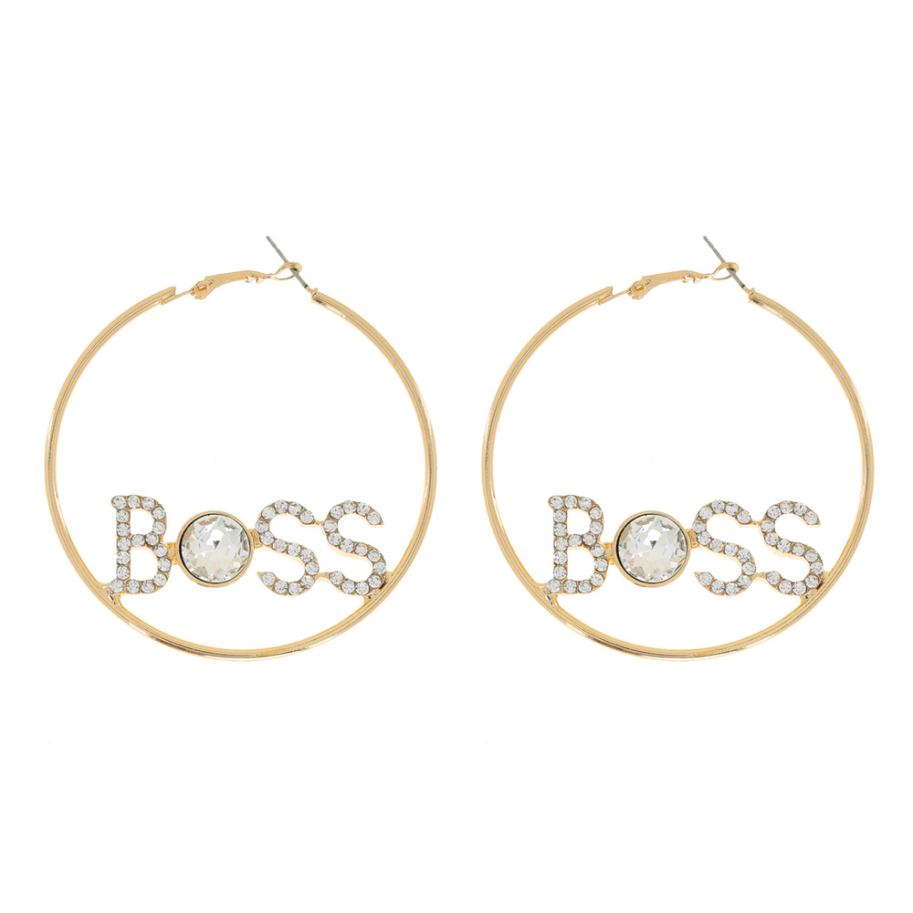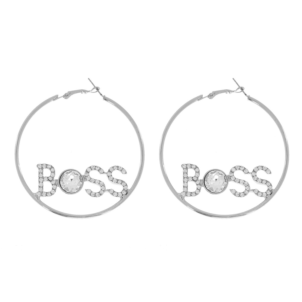 60MM BOSS CRYSTAL RHINESTONE PAVE HOOP STATEMENT EARRINGS