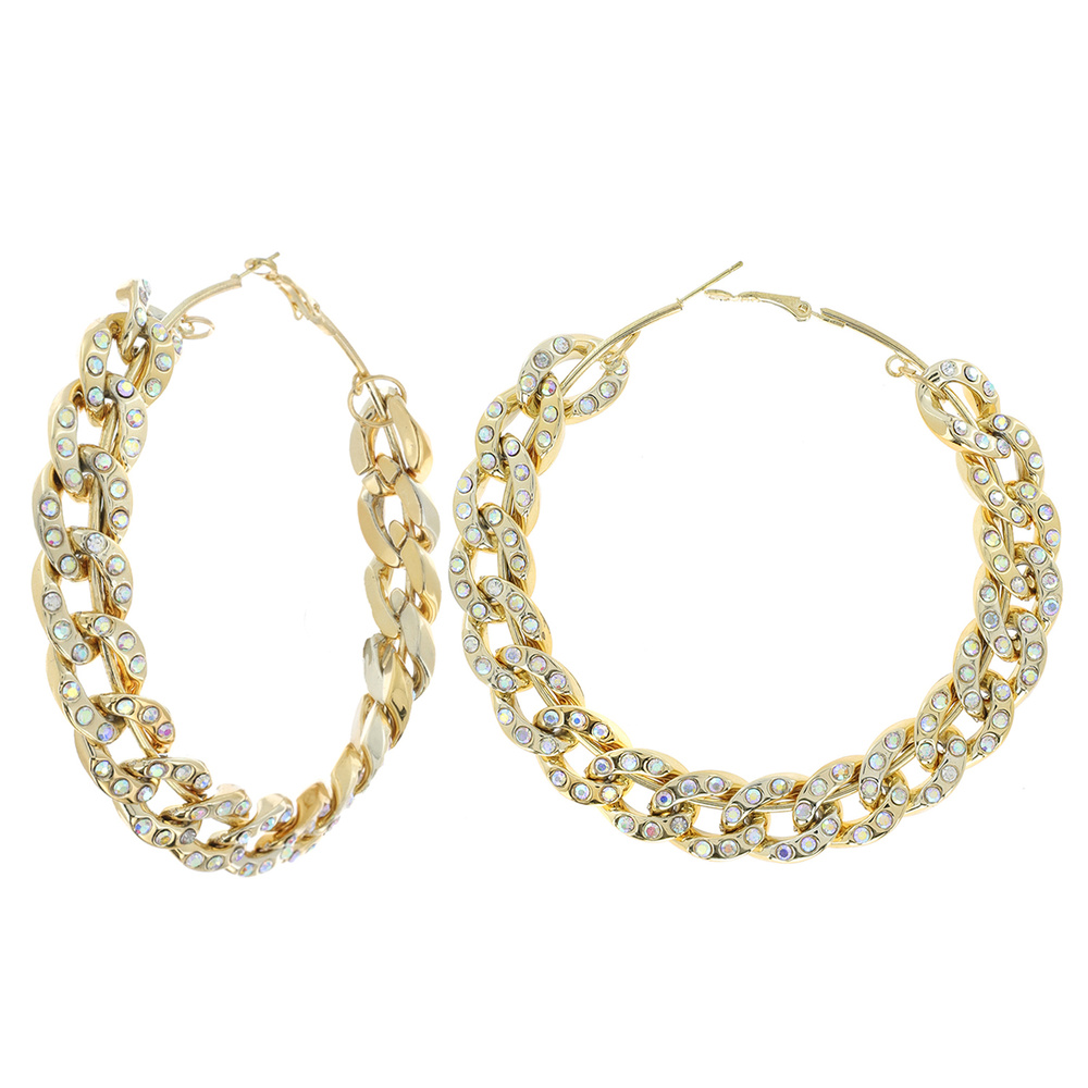 90mm Large Statement Micro Pave Cuban Link Hoop Earrings