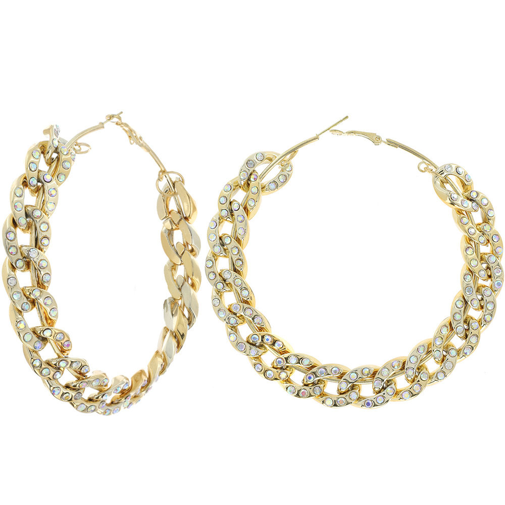 100mm Large Statement Micro Pave Cuban Link Hoop Earrings