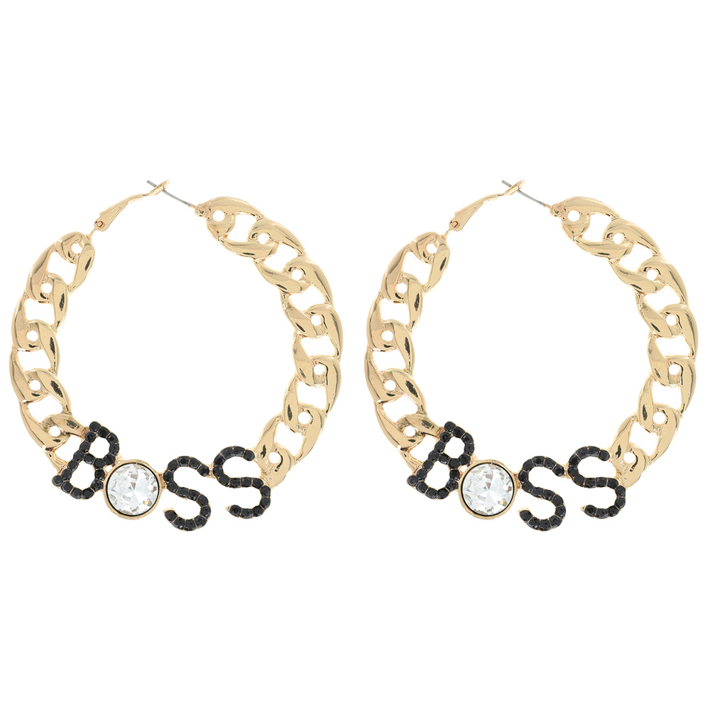RHINESTONE PAVE BOSS HOOP EARRINGS
