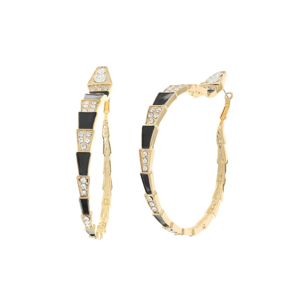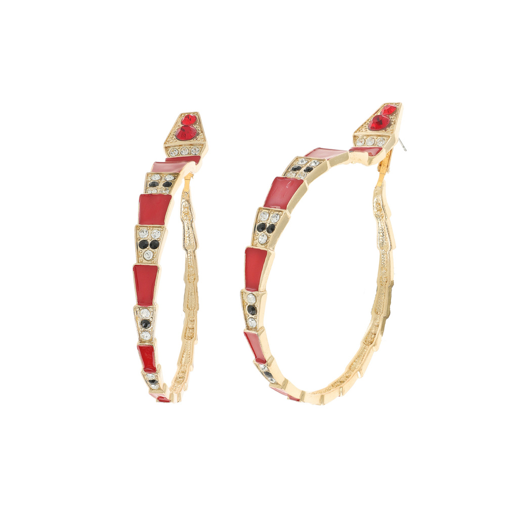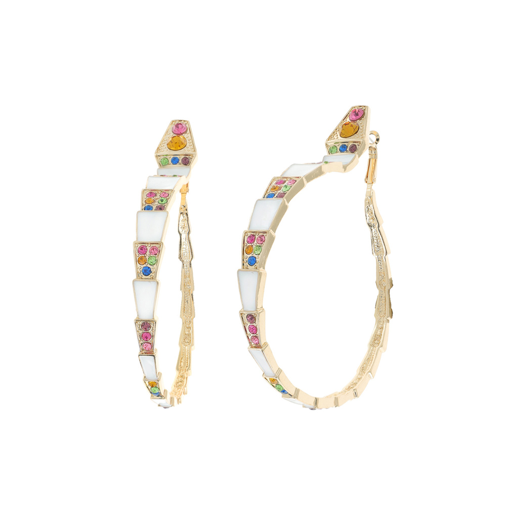 EPOXY AND MULTICOLOR CRYSTAL RHINESTONES SNAKE DESIGN LARGE STATEMENT HOOP EARRINGS
