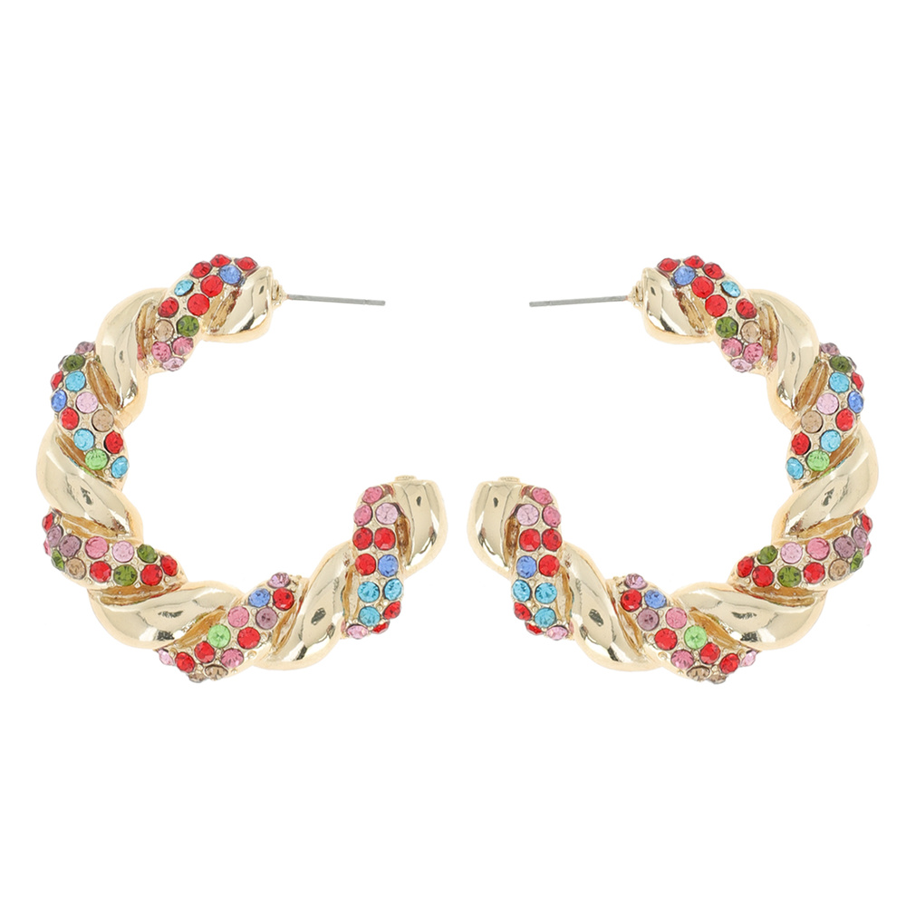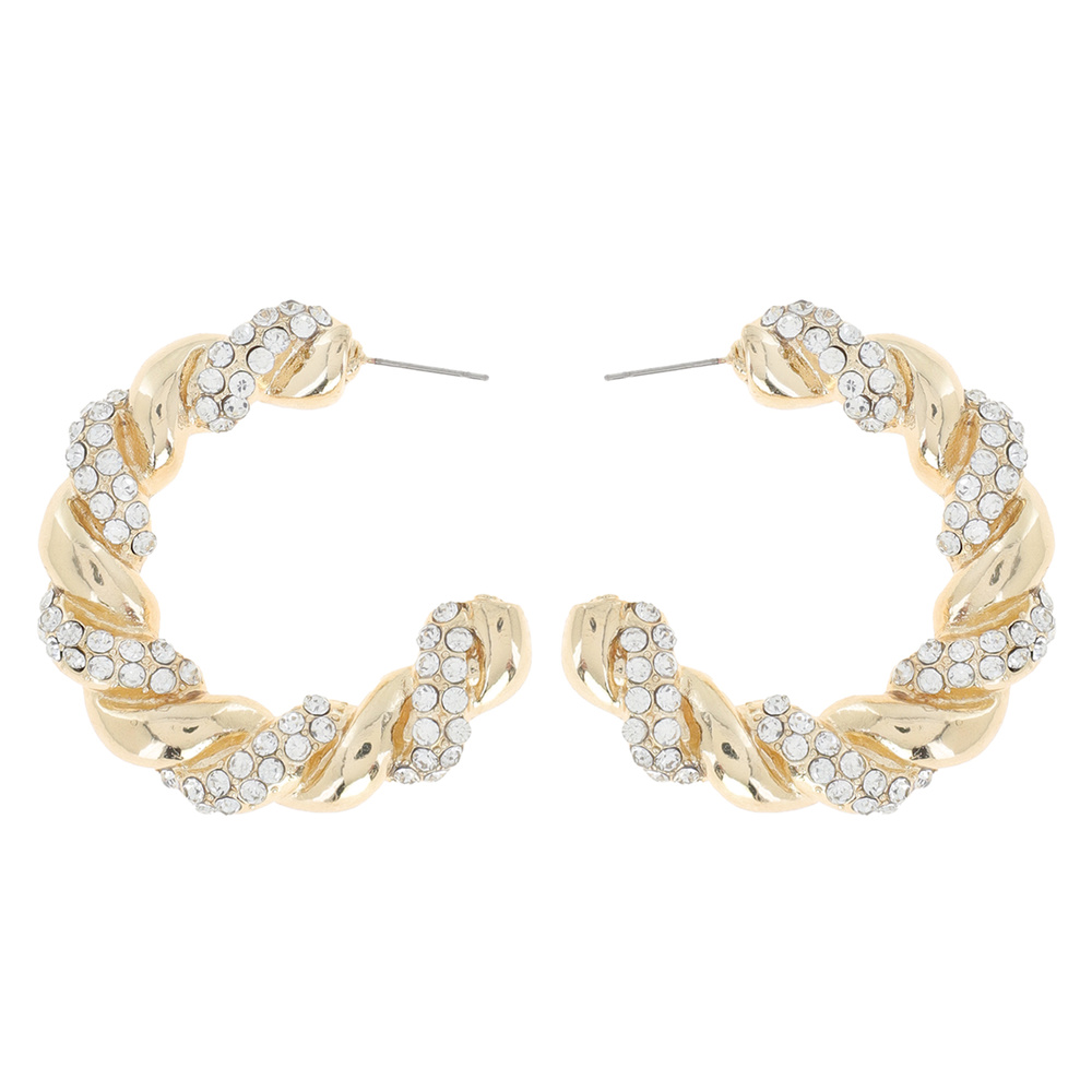 Urban Chic Rope Spiral Half Hoop Earrings With Pave Rhinestone Accent