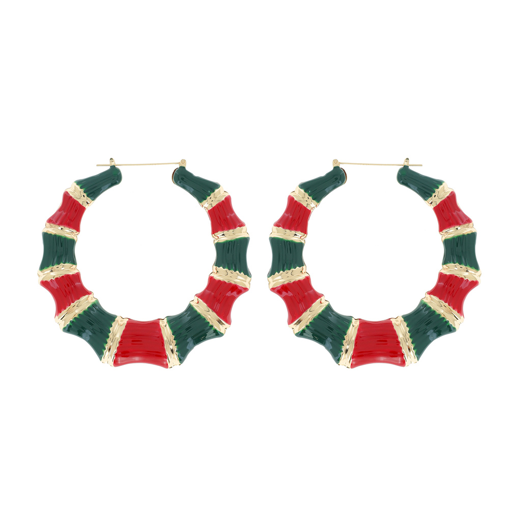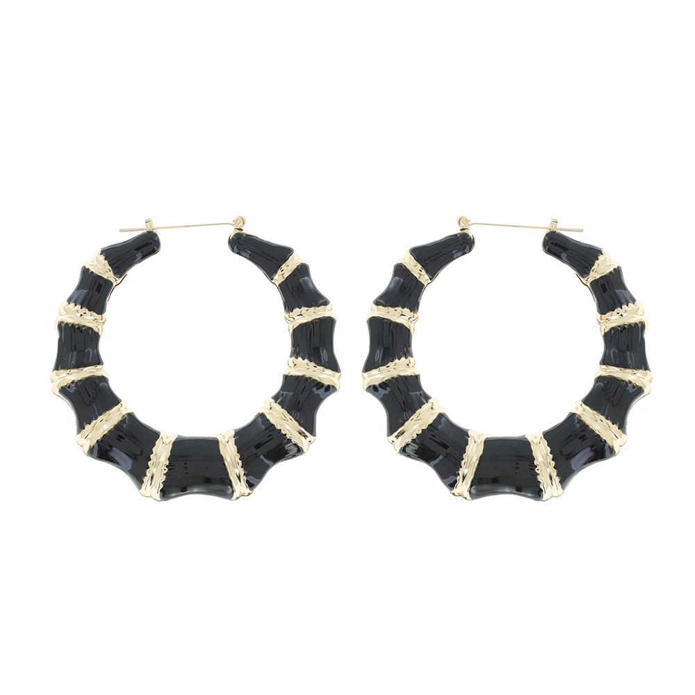 80MM GOLD TONE URBAN CHIC BAMBOO HOOP EARRINGS WITH ENAMEL ACCENT