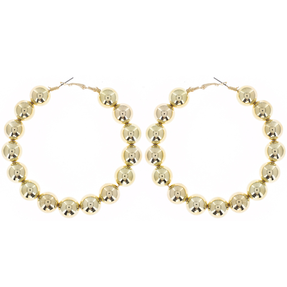 METAL BEADED STATEMENT LARGE HOOP EARRINGS
