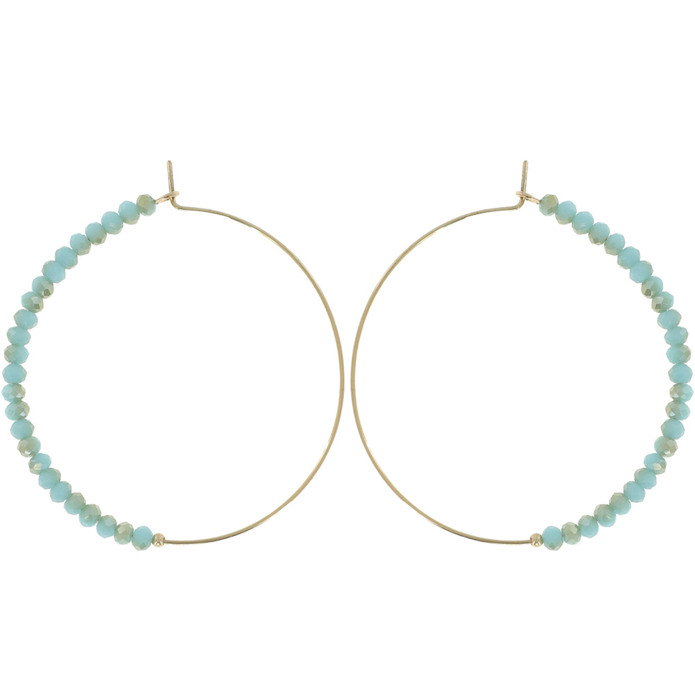 GOLD TONE GEMSTONE BEADED HOOP EARRINGS