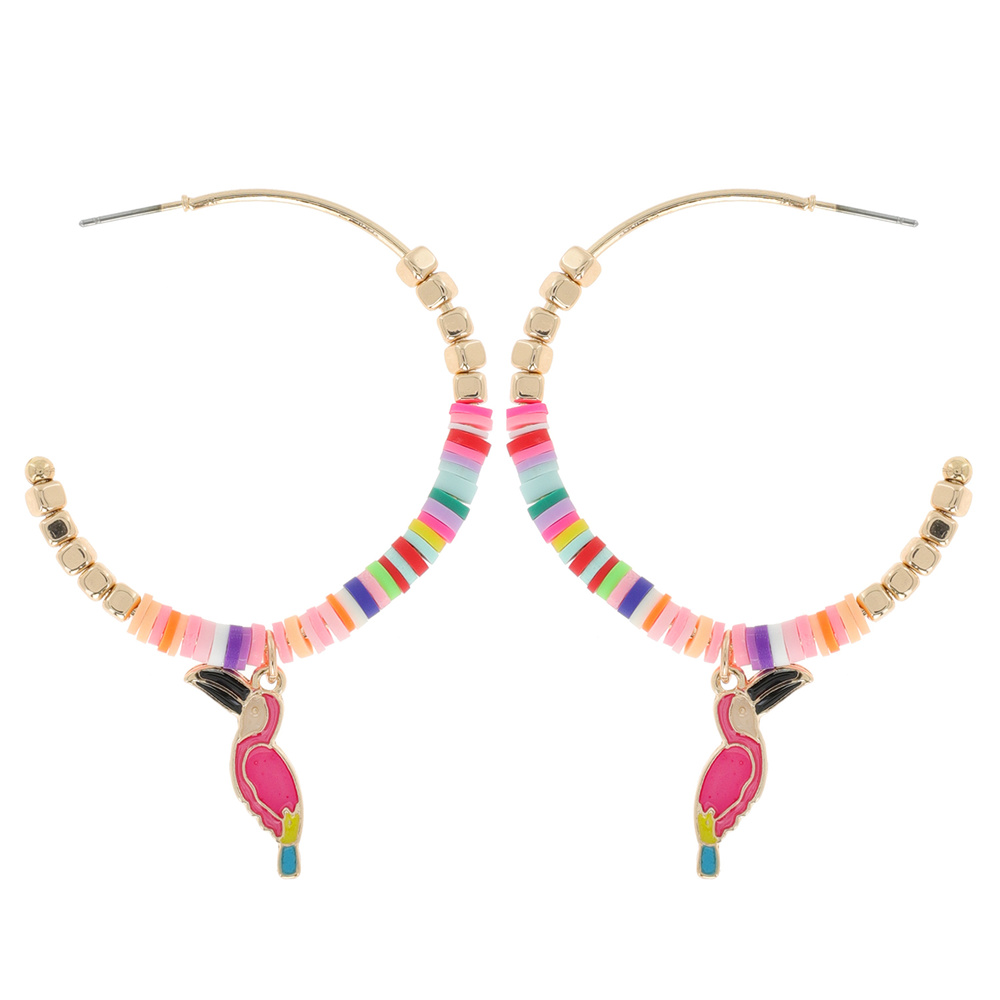MULTI BEAD TOUCAN CHARM OPEN HOOP EARRINGS