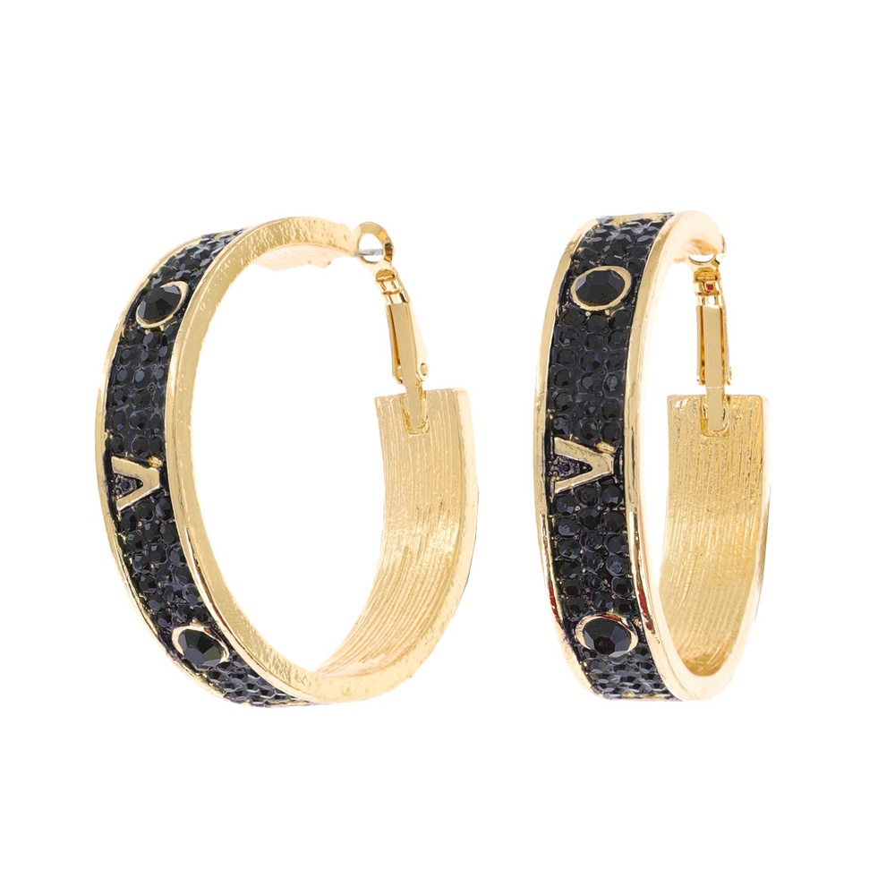 50mm Large Crystal Rhinestone Roman Numerals Hoop Earrings