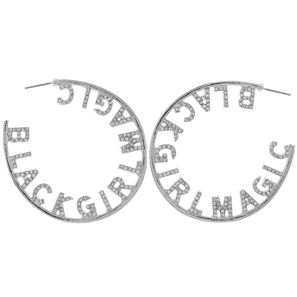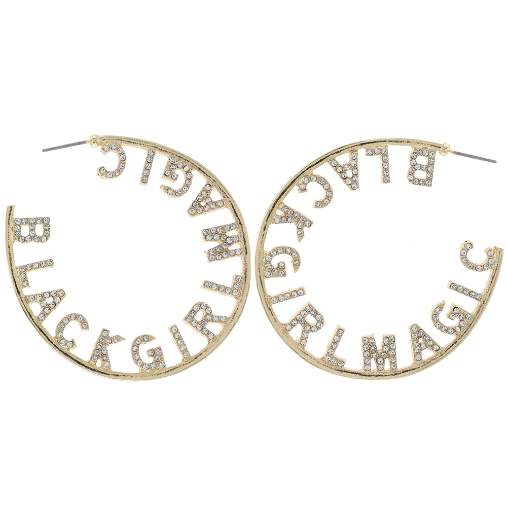 Black Girl Magic Rhinestone Pave Open Hoop Earrings