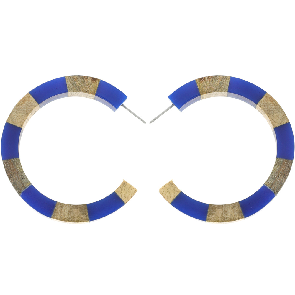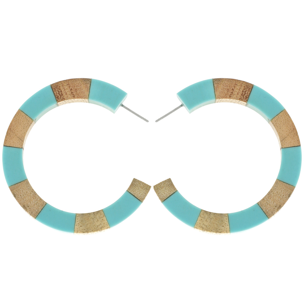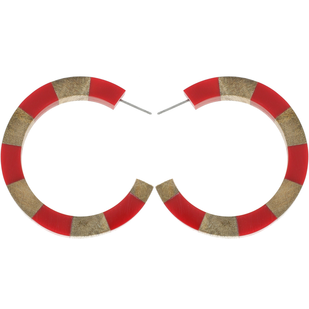 BOHO TWO-TONE STRIPED OPEN HOOP ACRYLIC EARRINGS