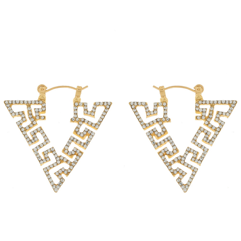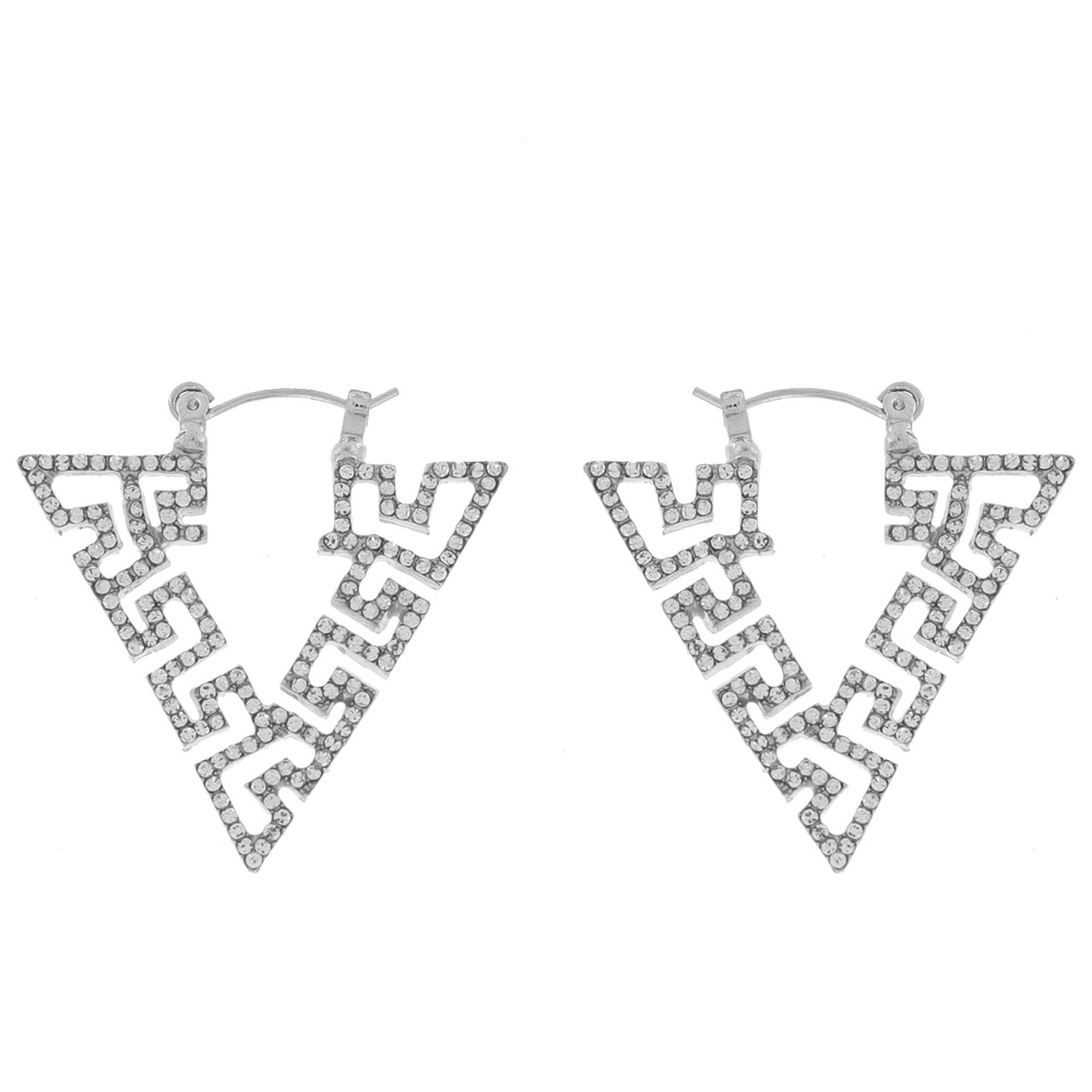 30MM CRYSTAL PAVE GREEK KEY SQUARE DESIGN TRIANGULAR HOOP EARRINGS