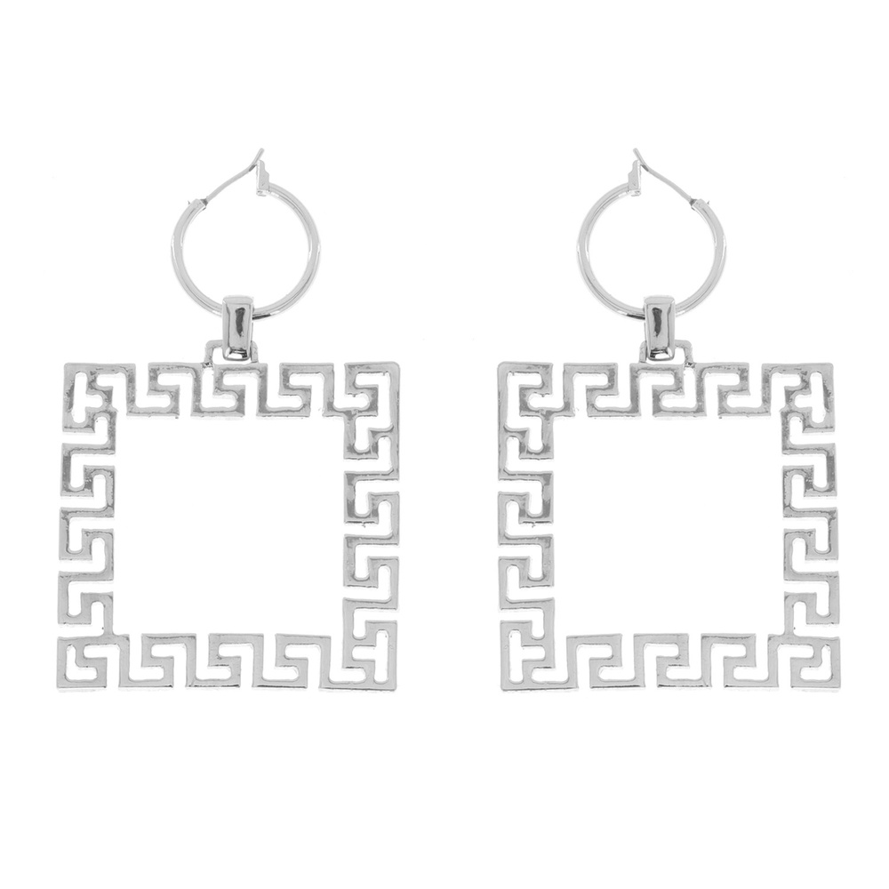 GREEK KEY DANGLE AND DROP OPEN SQUARE CLASP EARRINGS