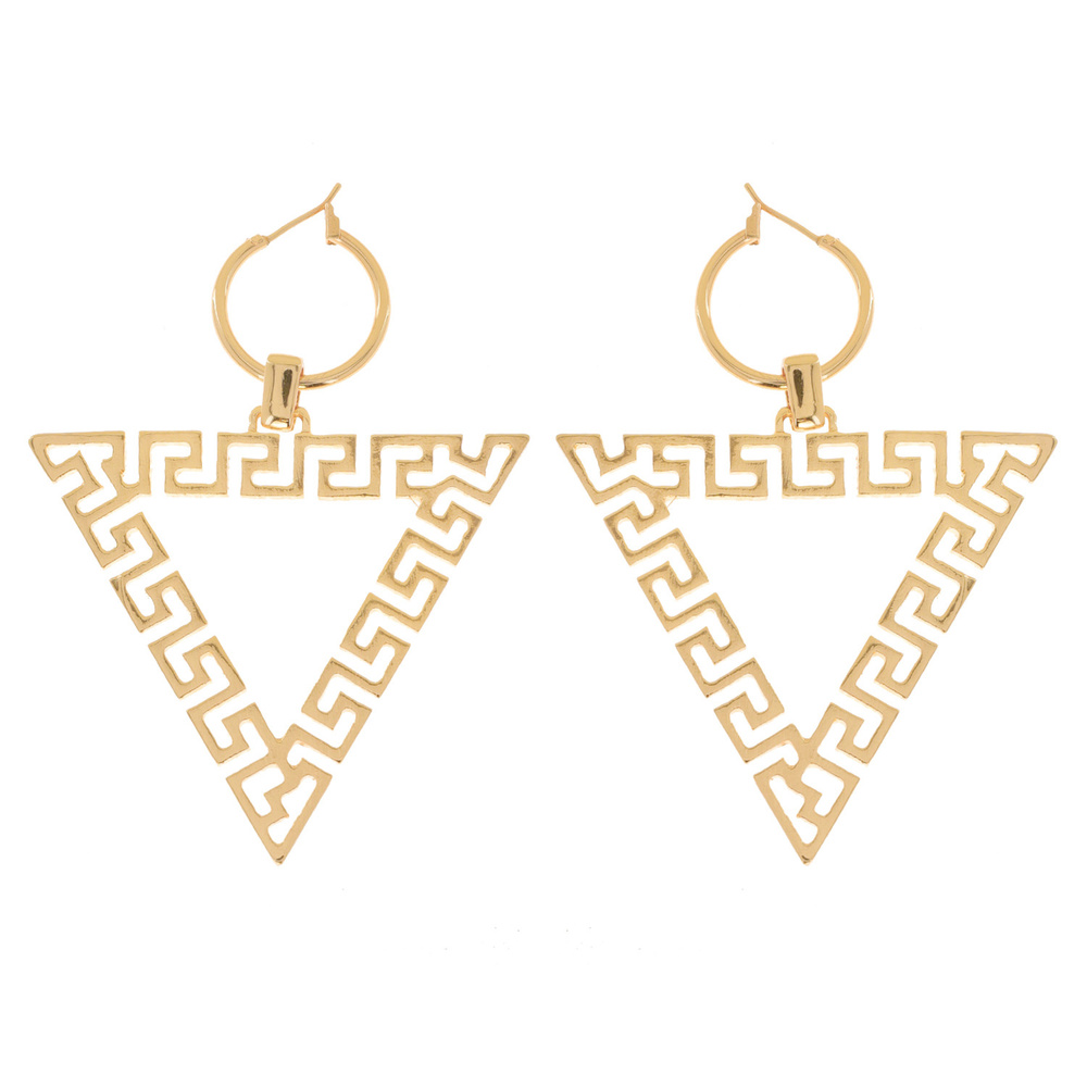 Greek Key Dangle And Drop Open Triangle Clasp Earrings