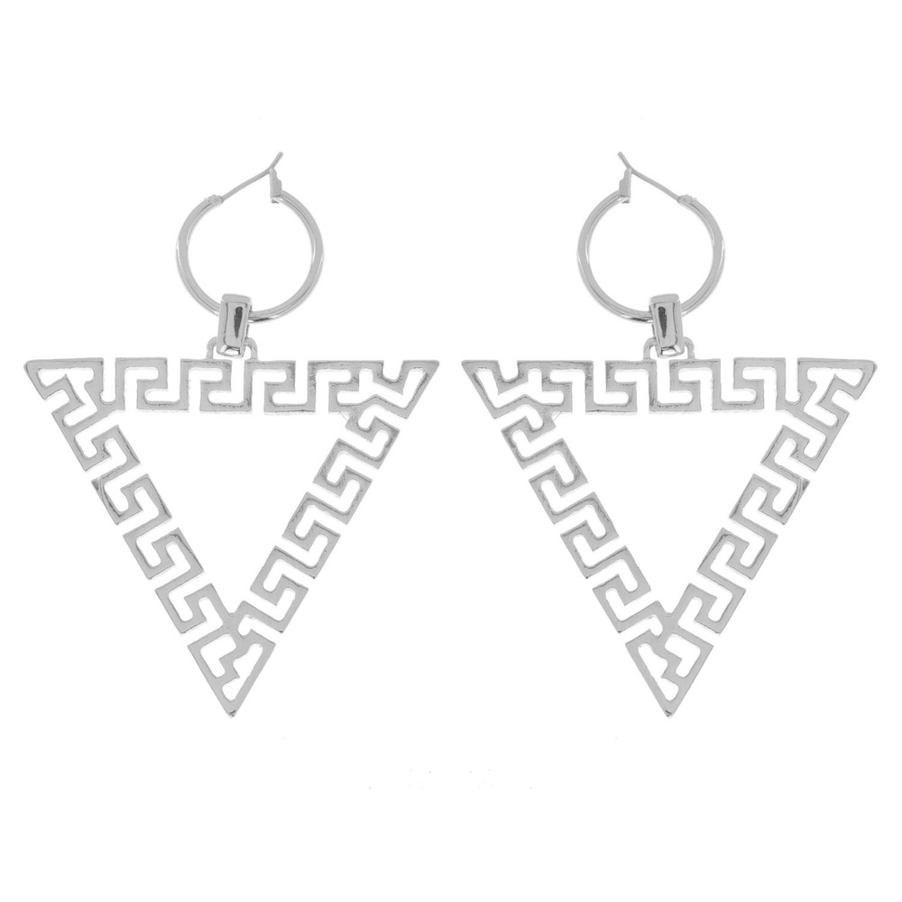 GREEK KEY DANGLE AND DROP OPEN TRIANGLE CLASP EARRINGS
