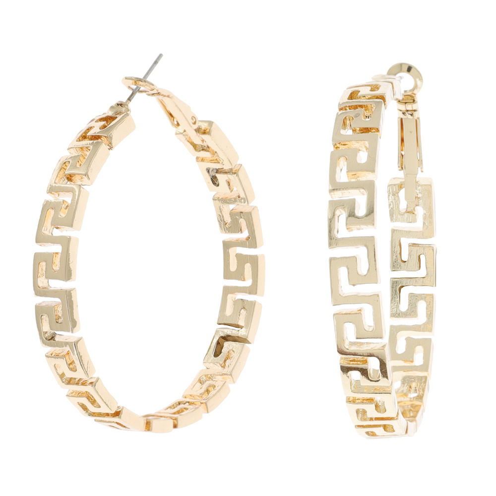 50MM LARGE GREEK KEY CIRCULAR HOOP EARRINGS