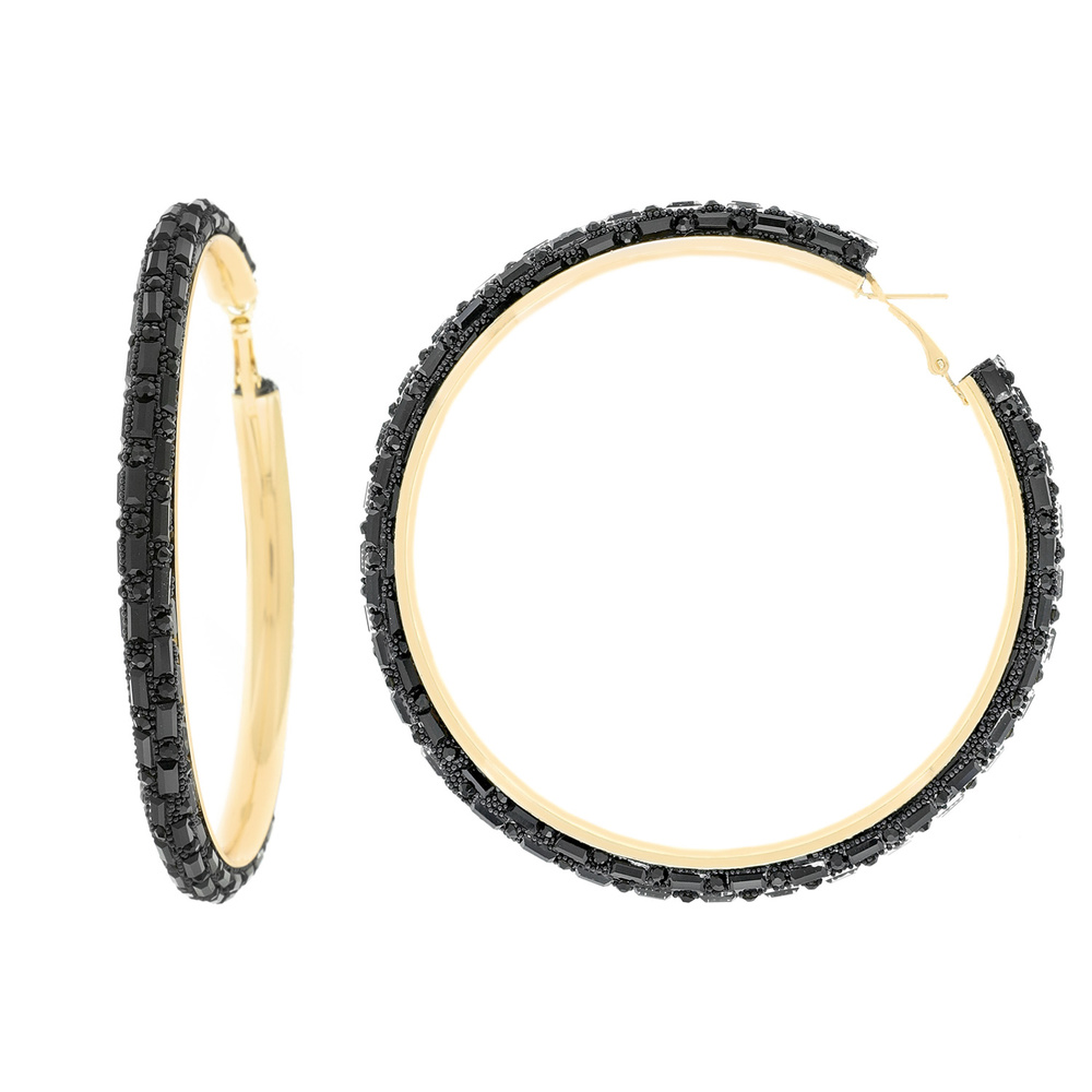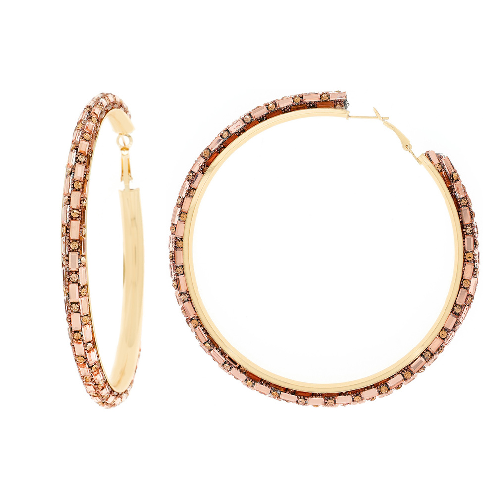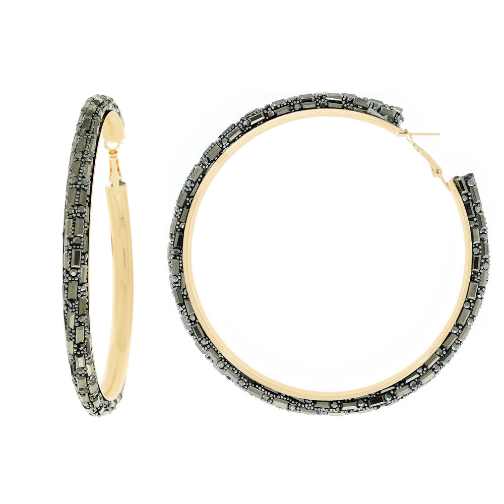 8CM RECTANGLE RHINESTONE HOOP EARRINGS