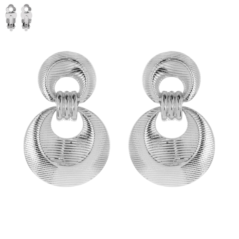CIRCLE RIBBED METAL CLIP ON EARRING
