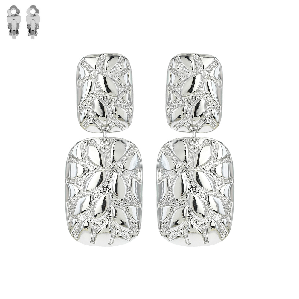 BOHO HAMMERED METAL 2-TIER RECTANGULAR DANGLE AND DROP CLIP ON EARRINGS