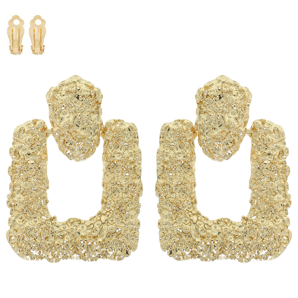 GOLD-TONE METALLIC TEXTURED SQUARE NUGGET CLIP ON EARRINGS