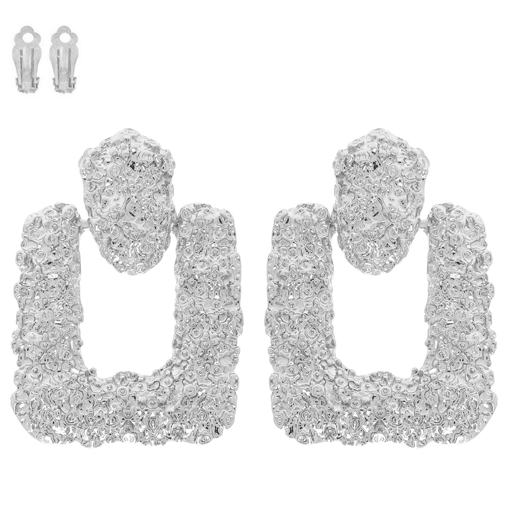 Textured Metallic Square Clip On Earrings